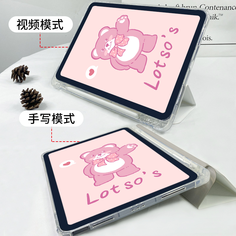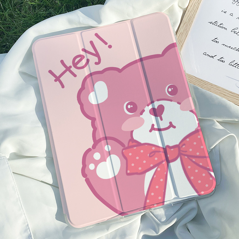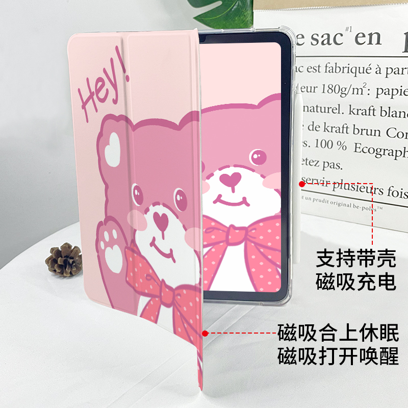 Suitable for ipad protection shell cute bear 2021 flat sleeve ipad9 ninth generation cartoon female ipadpro with pen slot air4 triplesilica gel mini6 transparent 10
