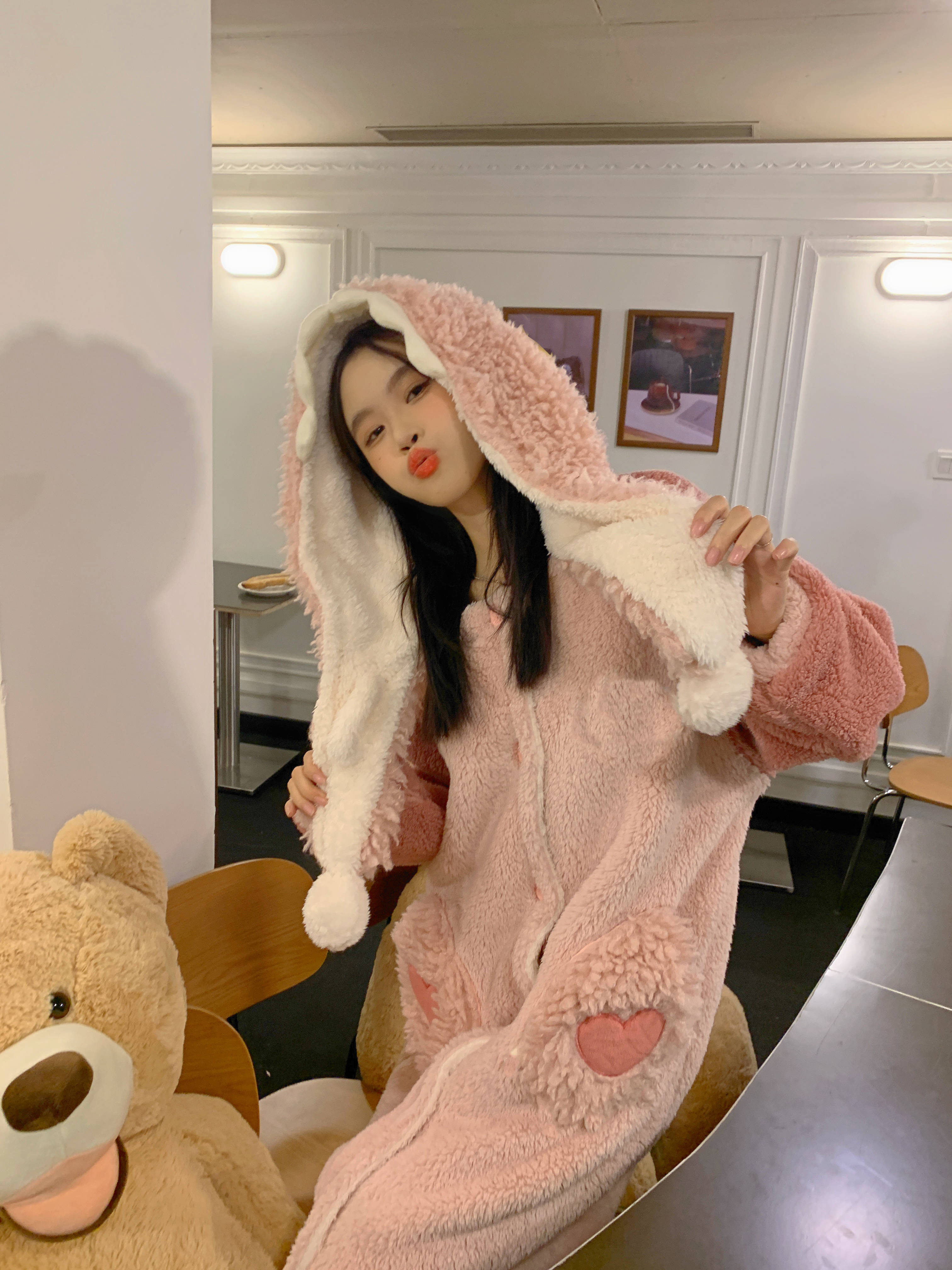 High quality~blogger recommends coral velvet dress woman winter long edition of hat home dress dress