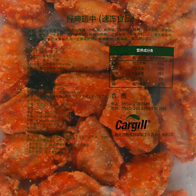 Cargill classic wings in the whole box 1kg * 10 bags of conditioning and pickled semi-finished grilled chicken wings fried snacks semi-finished products
