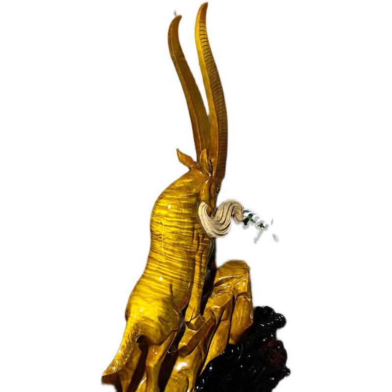 Golden Silk Nangwood Carved Goat Sheep 100 million swing pieces Umwood pendulum pieces Longflower bird landscape Animals Crafts Crafts Gifts Hem of Sinned Wood Root Sculptures