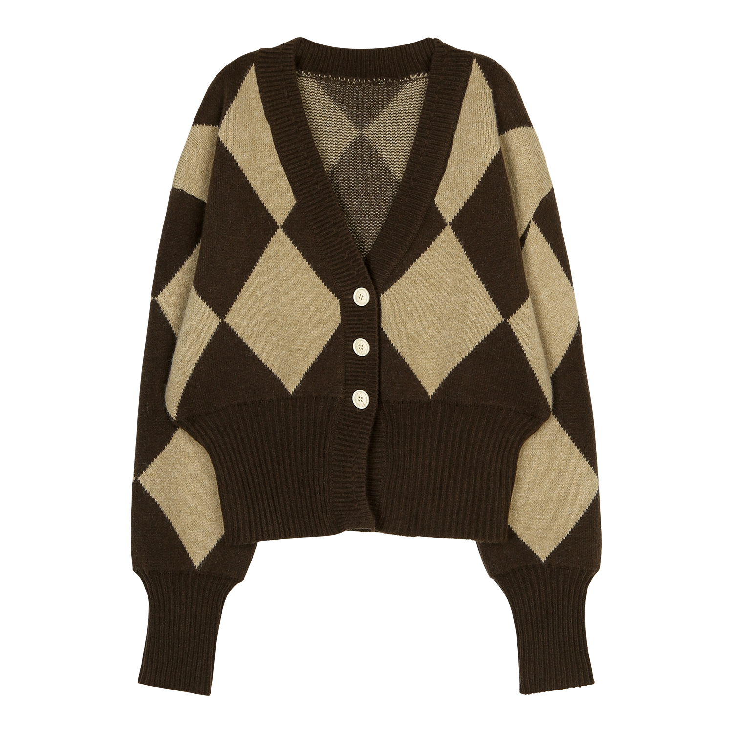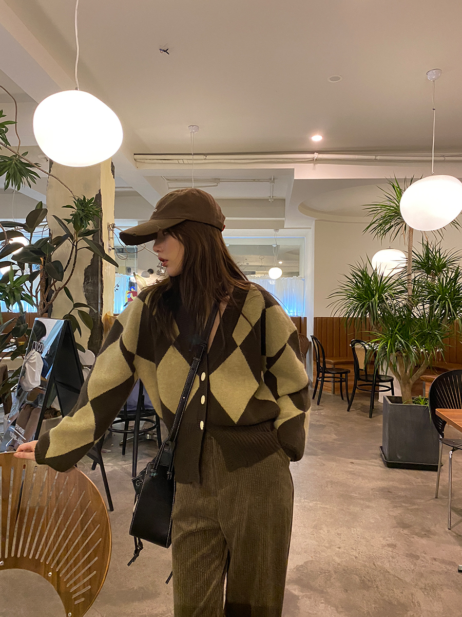 Small read custom retro diamond sweater women fall/winter new casual Joker V-neck loose lazy wind cardigan coat