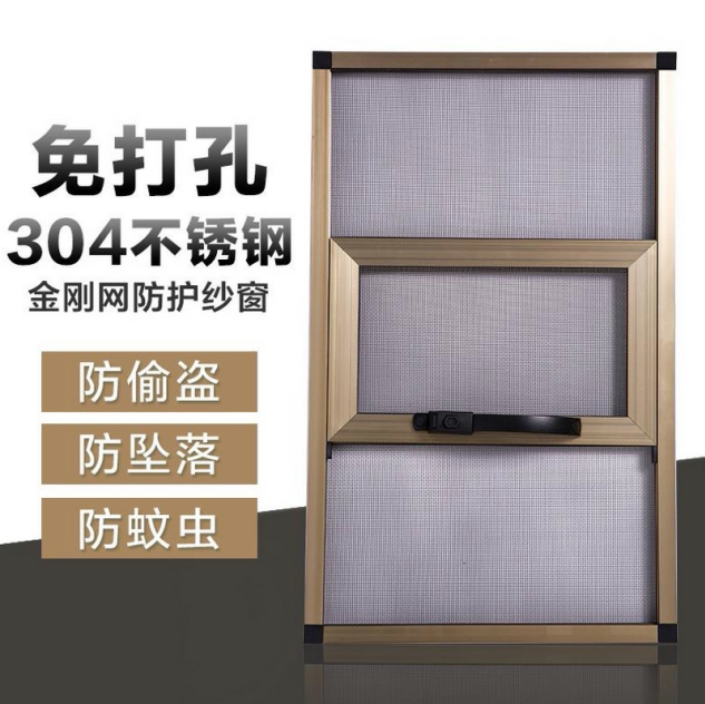 Three-push aluminum alloy arc-shaped plastic steel aluminum alloy anti-mosquito anti-mosquito free punching detachable emery net anti-theft screen window