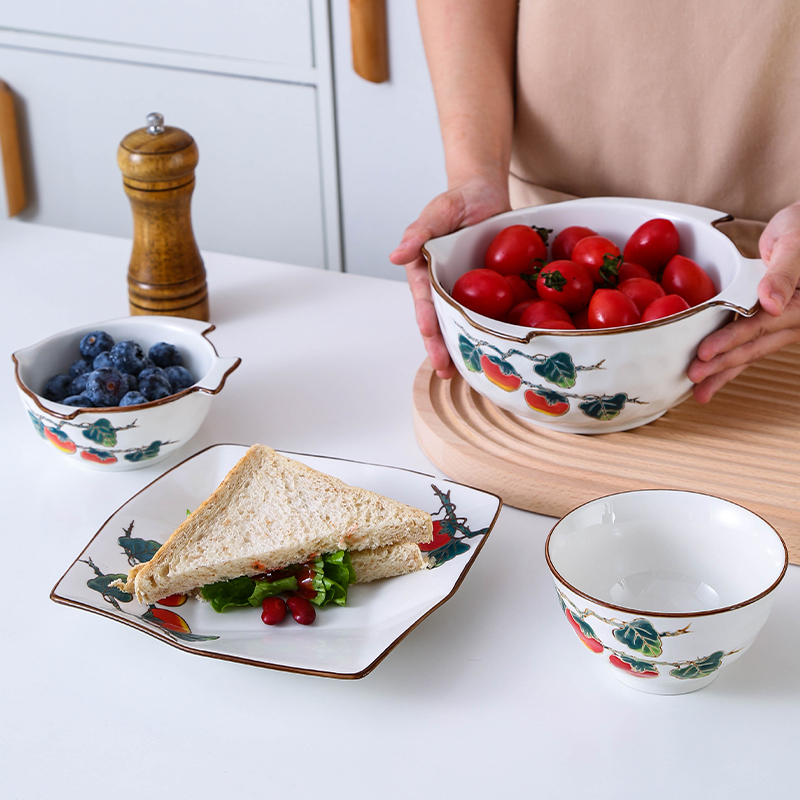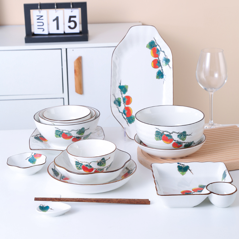 Hand painted persimmon Chinese style ceramic cutlery dishes Dish Suit Home Water Dumplings Plate Fish Plate Bowl tray Composition