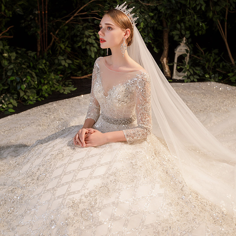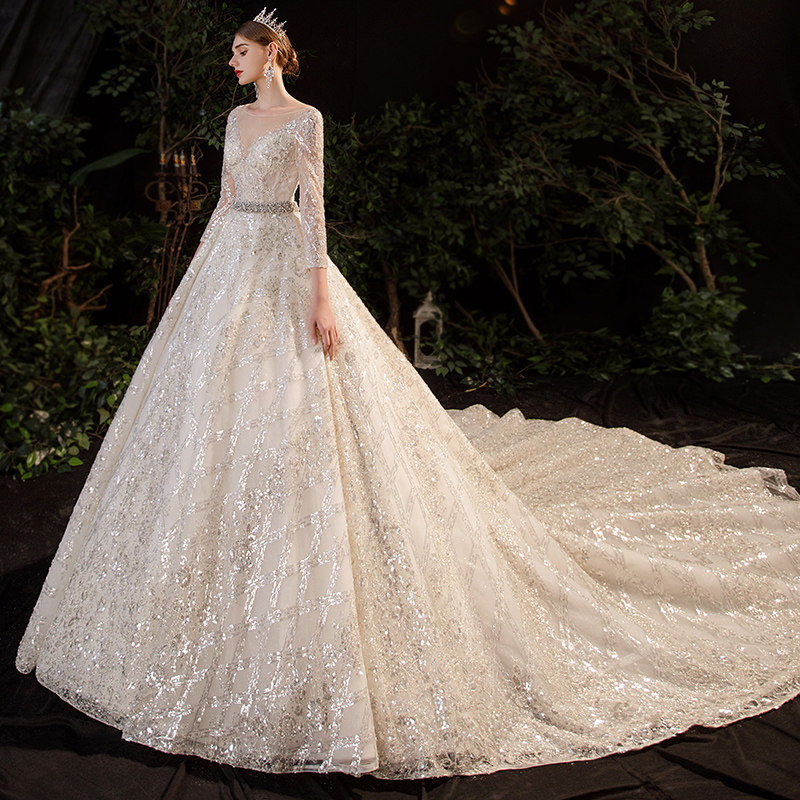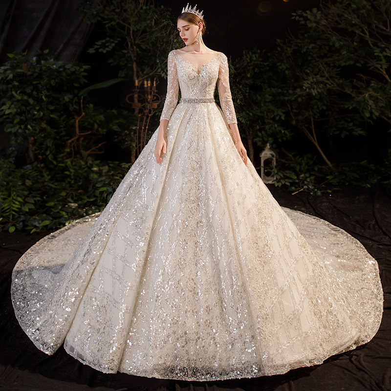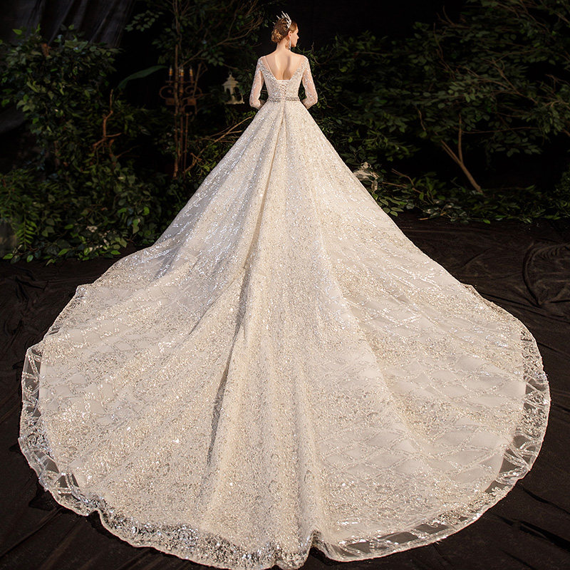 Long sleeve fasting wedding dress 2022 new bridal main wedding dress small sub-palace wind reworked trailing senior summer daughter