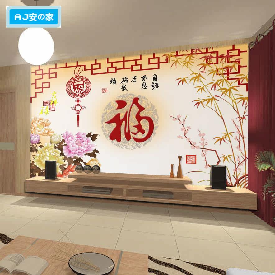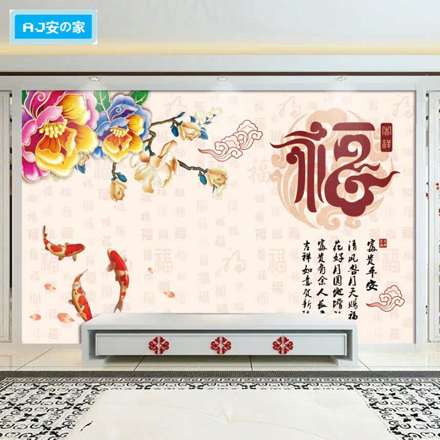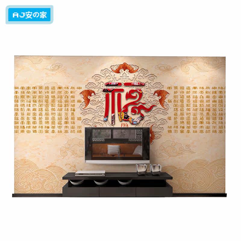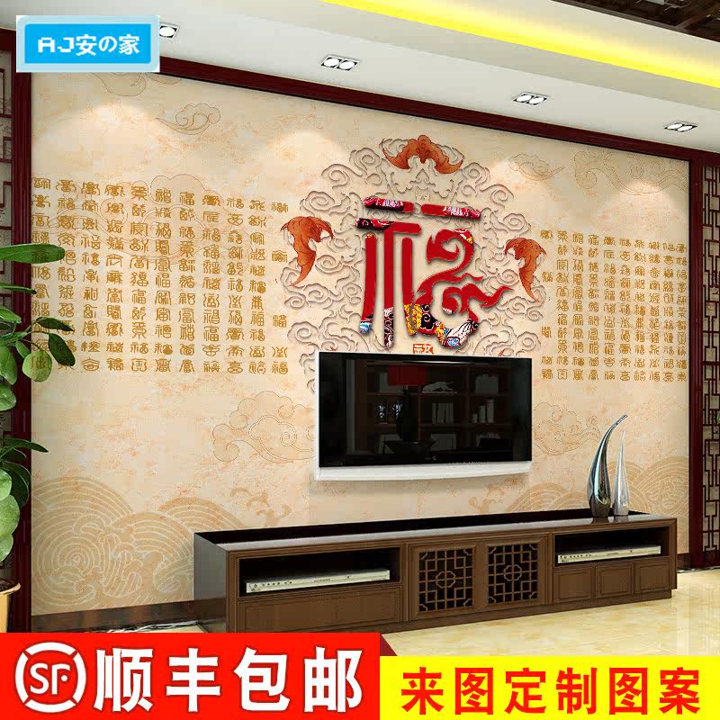 8D Chinese three-dimensional auspicious clouds and blessing characters wallpaper living room TV background wall cloth porch New Year pictures auspicious and wishful wallpaper