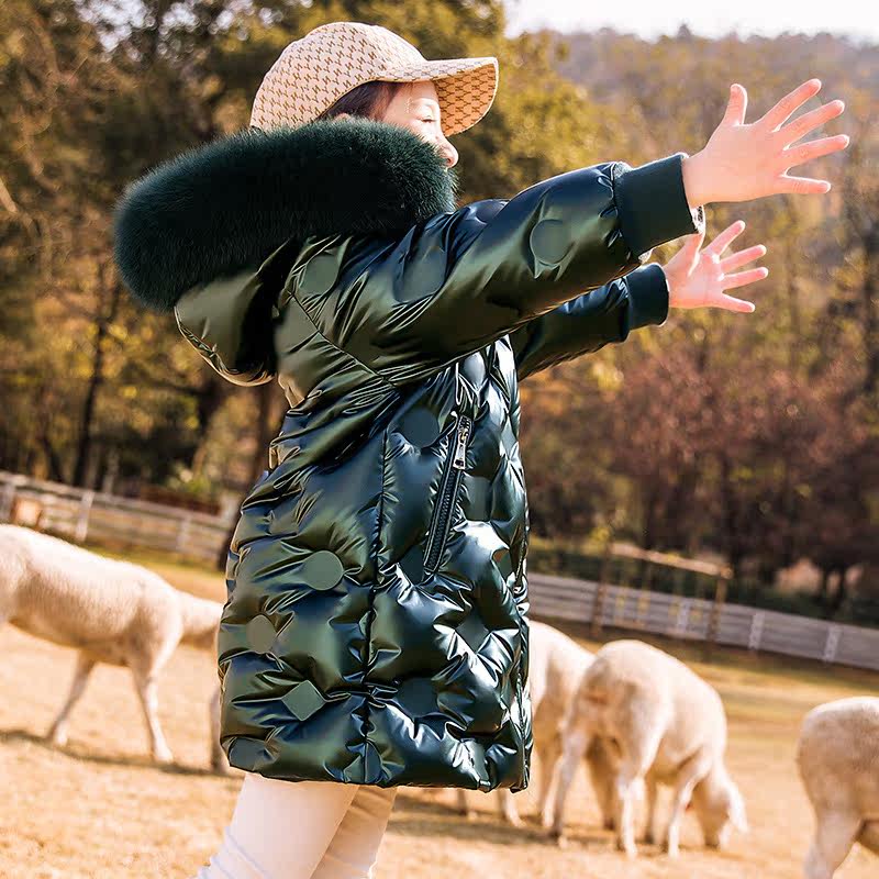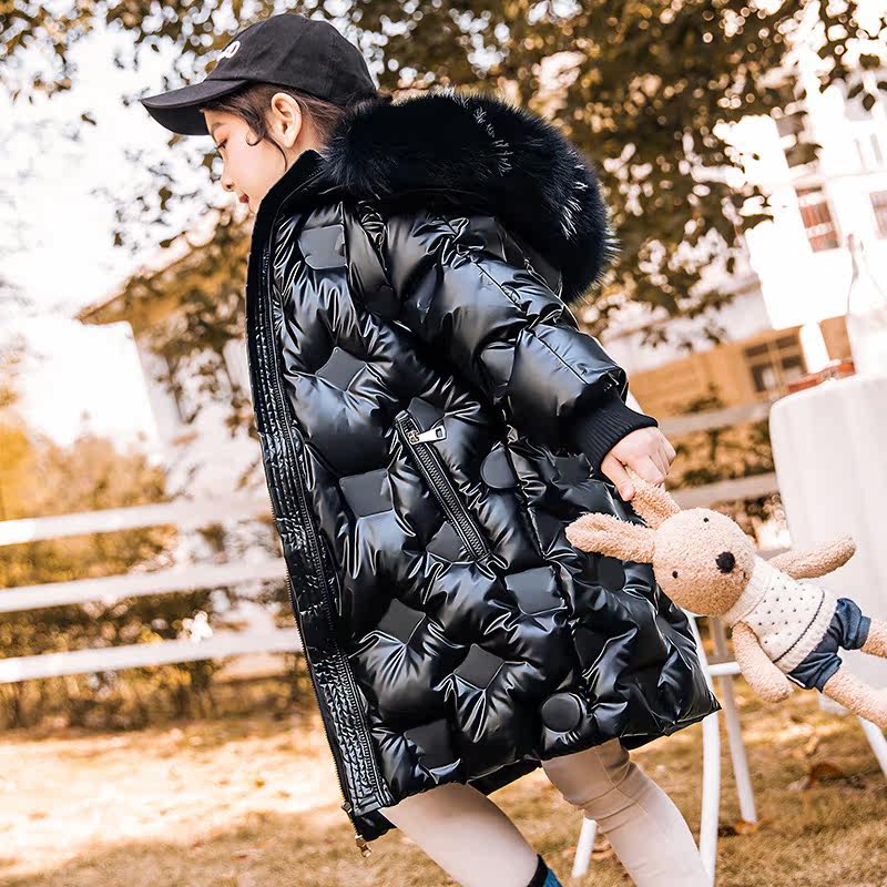 Next Music children with large coat bright face free of washing thickened down jacket Korean version pure color girl jacket tide-Taobao