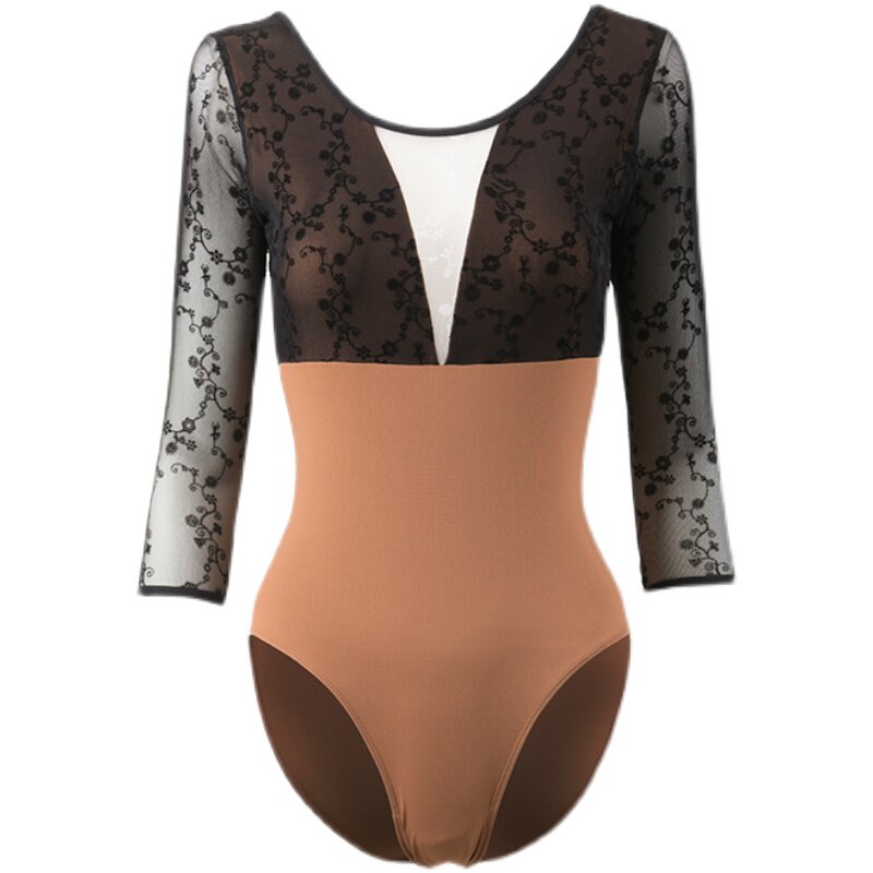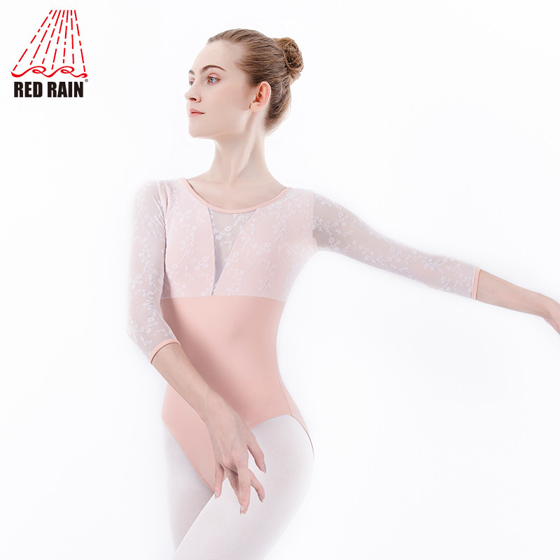 Red Rain Ballet professional training clothes women's dance clothes gymnastics body suits three-quarter sleeve one-piece suit big back art test