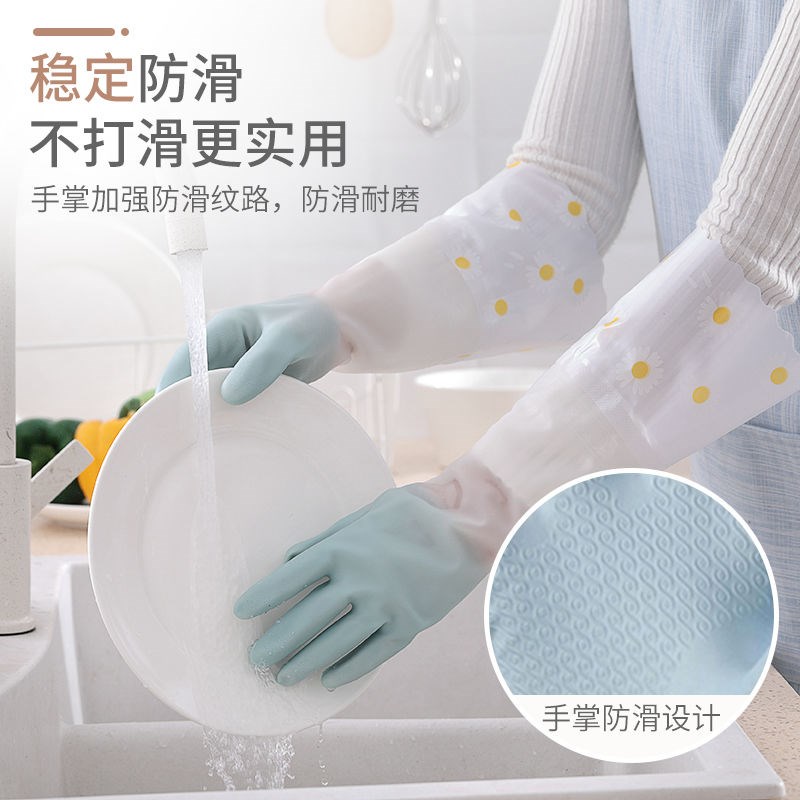 Daisy Garching dishwashing gloves female durable lengthened thickened abrasion resistant domestic waterproof glove rubber latex gloves