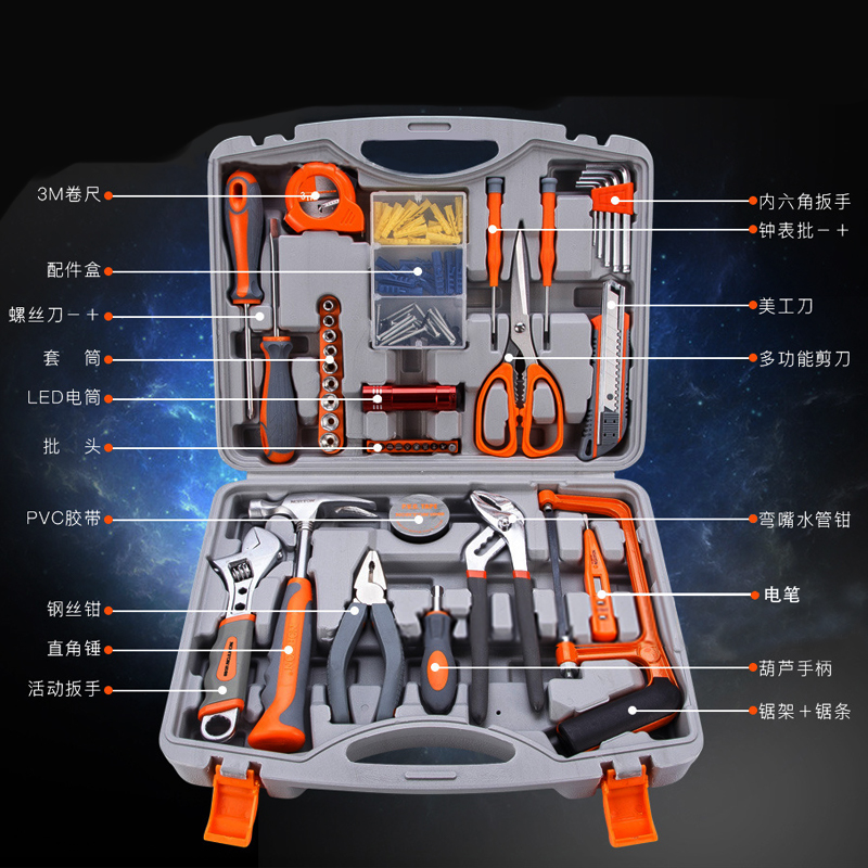 92 pieces of nickel iron alloy toolkit household multi - function manual tool combination to install wrench toolbox