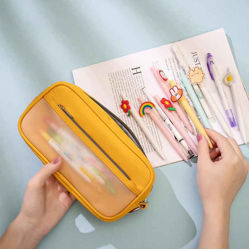 Brief Japan-ROK Large Capacity Translucent Student Pen Bag Elementary Junior High School High School High School Students Multifunction Handbooks Containing Pen box