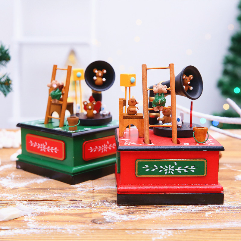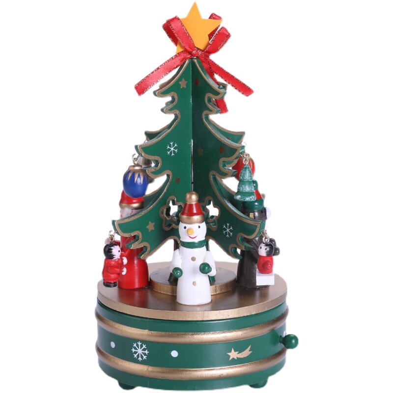 Christmas gift wooden rotatable Christmas tree music box music box desktop ornaments children's creative gifts