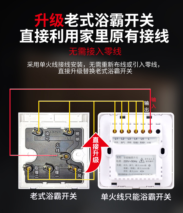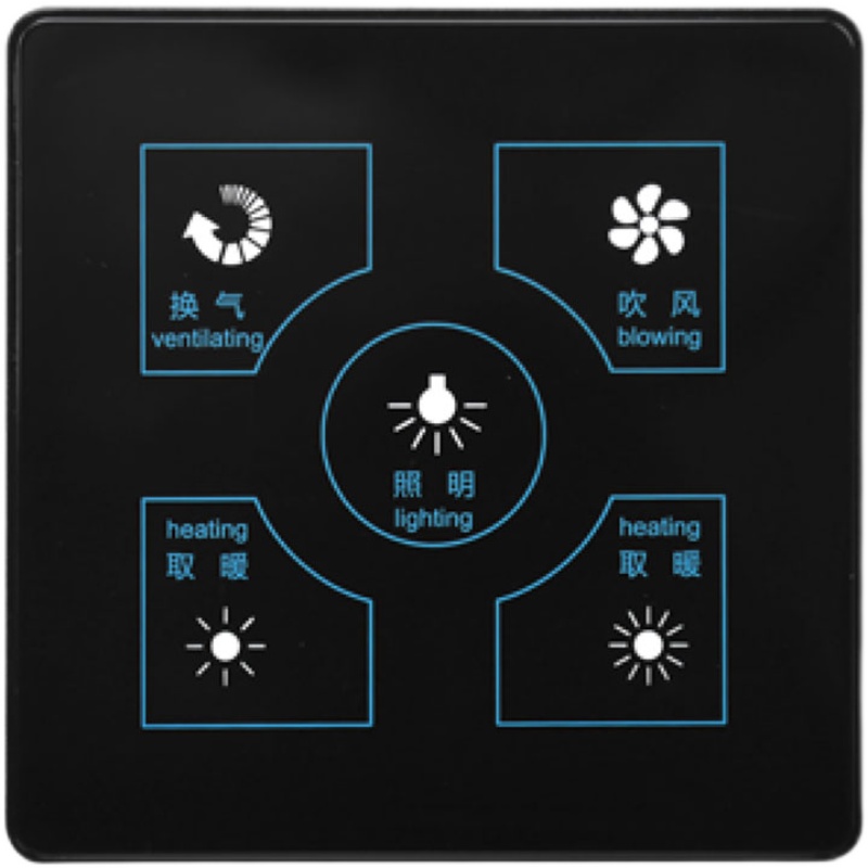 Single fire line bath switch 4 open bathroom bathroom heating lamp general waterproof 5 in one touch screen switch
