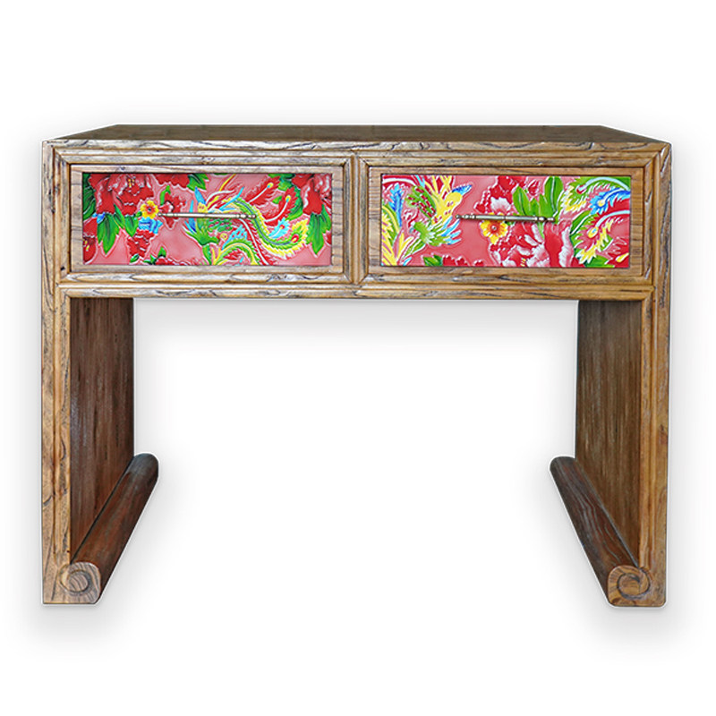 Jiafei Innovative Chinese All-solid Wood elm painting inlaid study desk table boss table tea table office