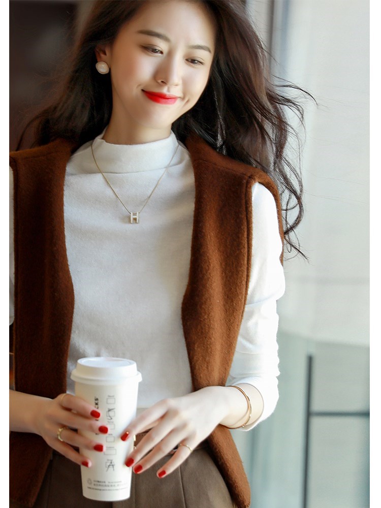 The Undershirt Woman Spring Autumn 2022 New Half High Collar Needlework Sweaters Slim Fit 100 Hitch Lady Sweater