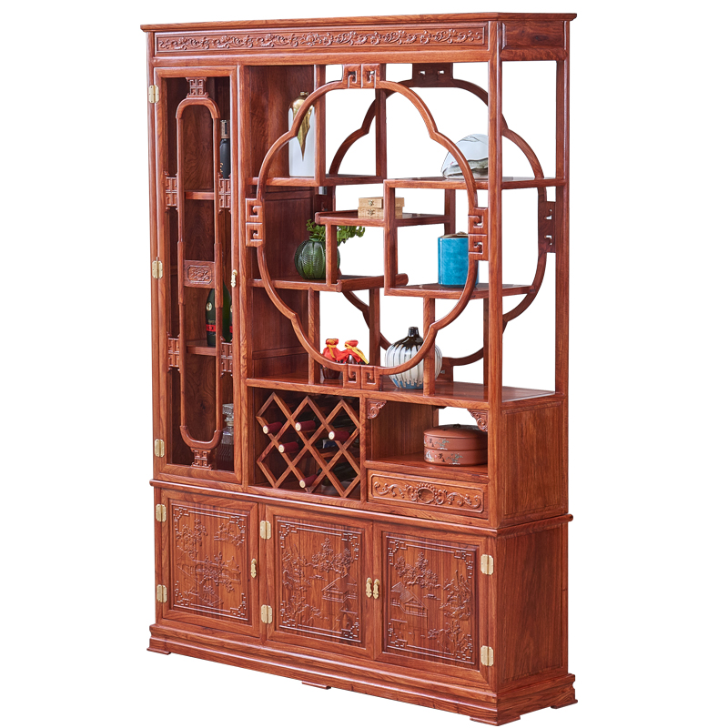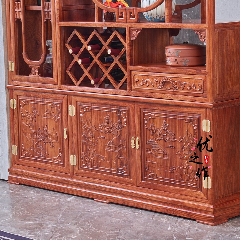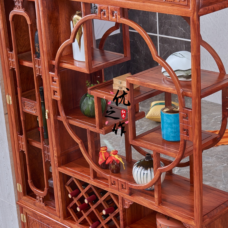 Red Wood Chinese Style Xuanguan Cabinet Flowers Pear Wood Living Room Cubicle Wine Cabinet Rack Hedgehog Purple Sandalwood Solid Wood Bifacial Carved compartment cabinet