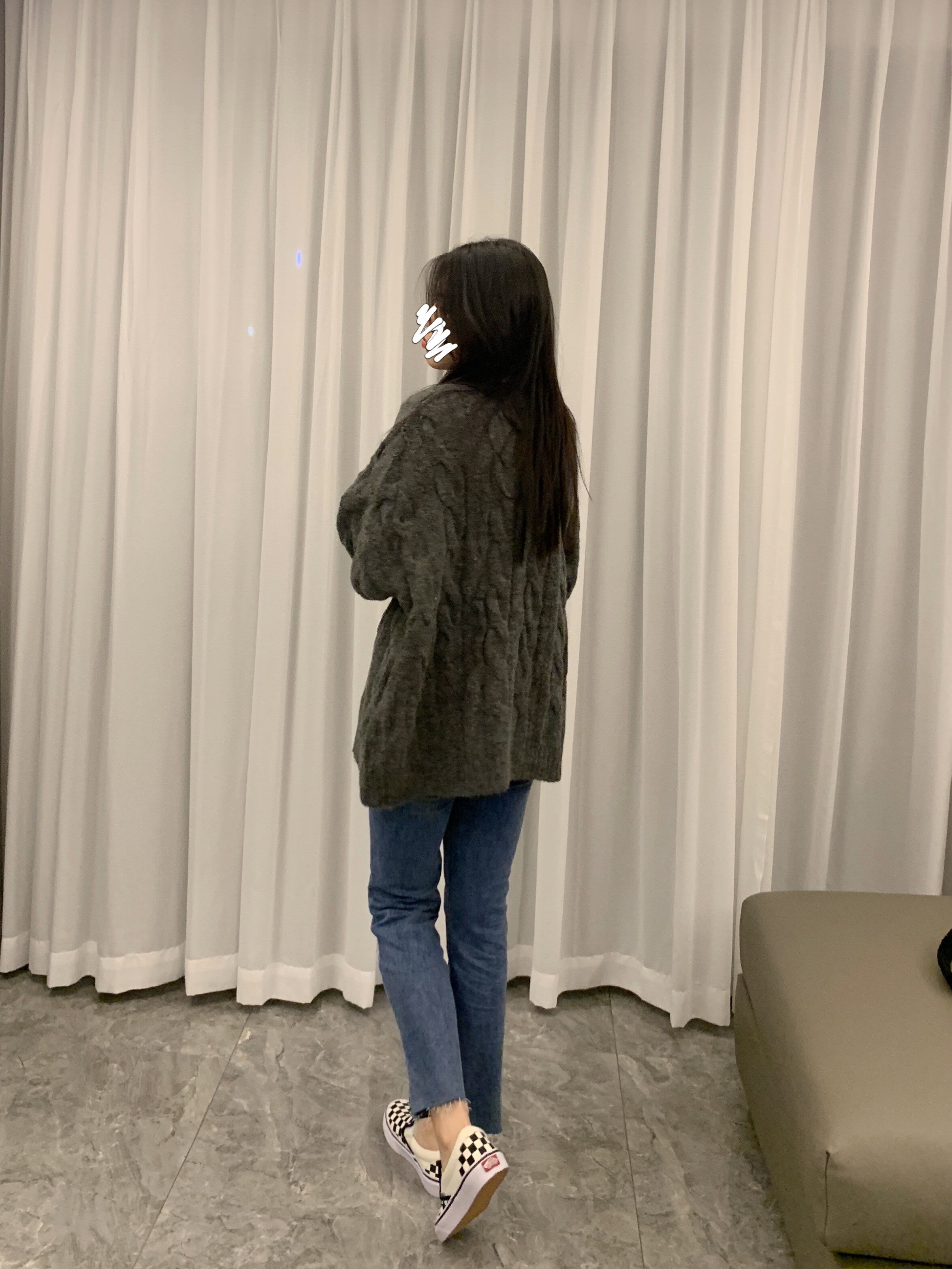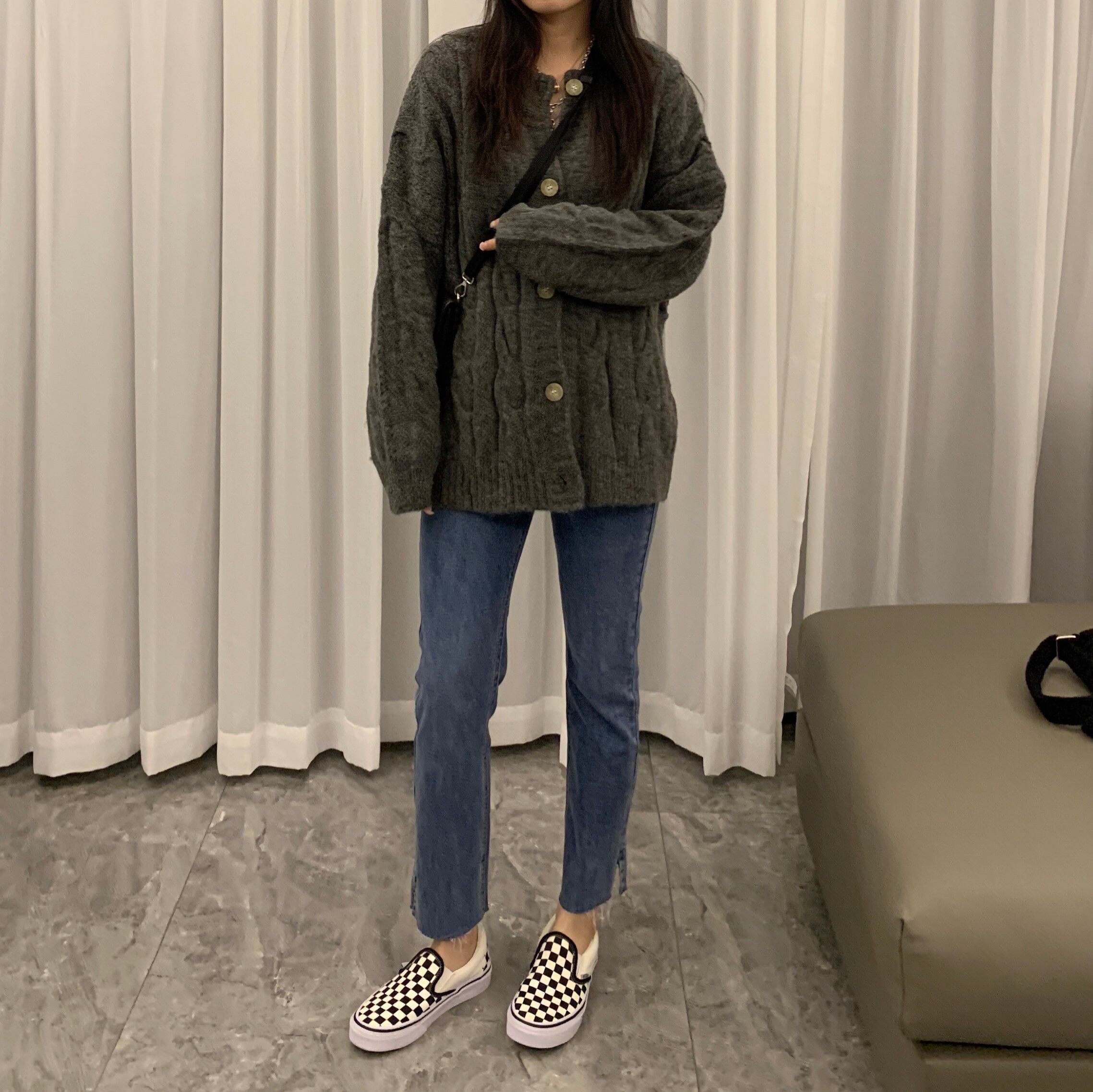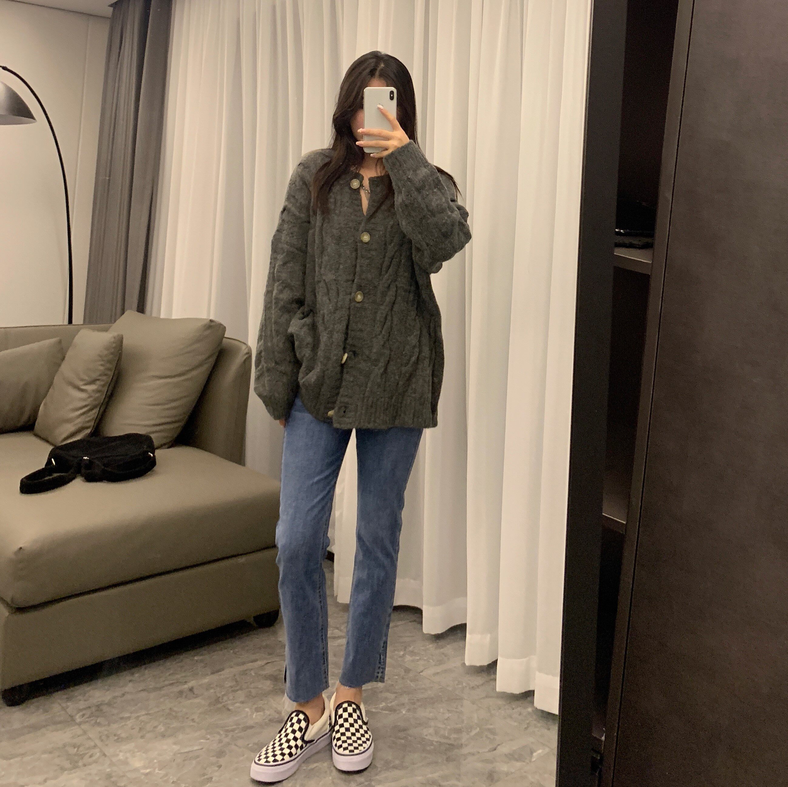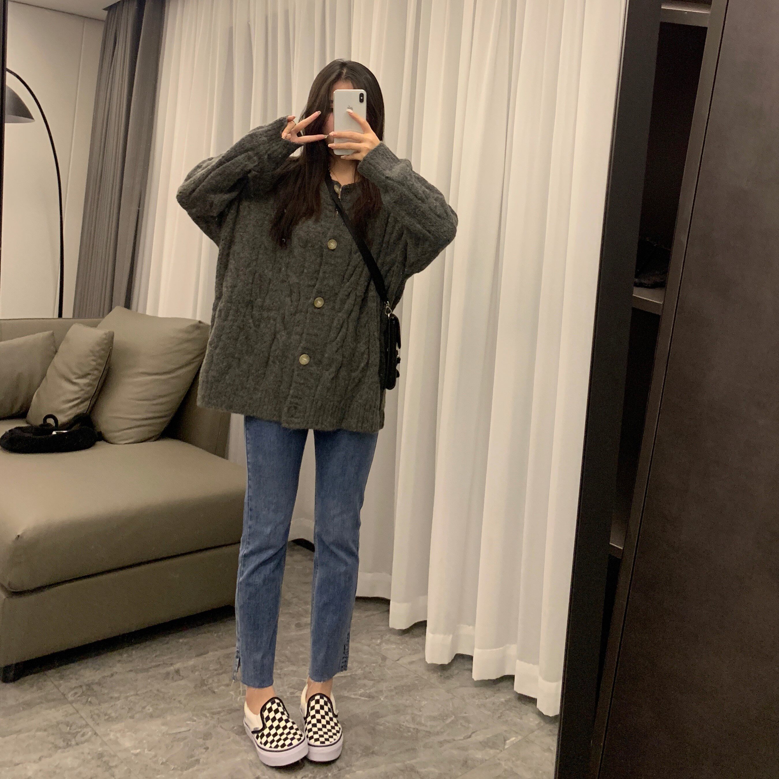 BLACKY sweater jacket woman fall 2021 new Korean version loose with lazy wind 100 lap thickened knit cardiovert blouse