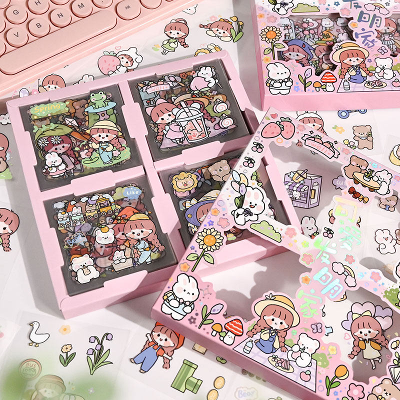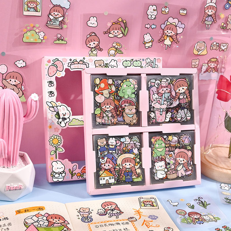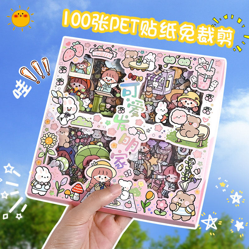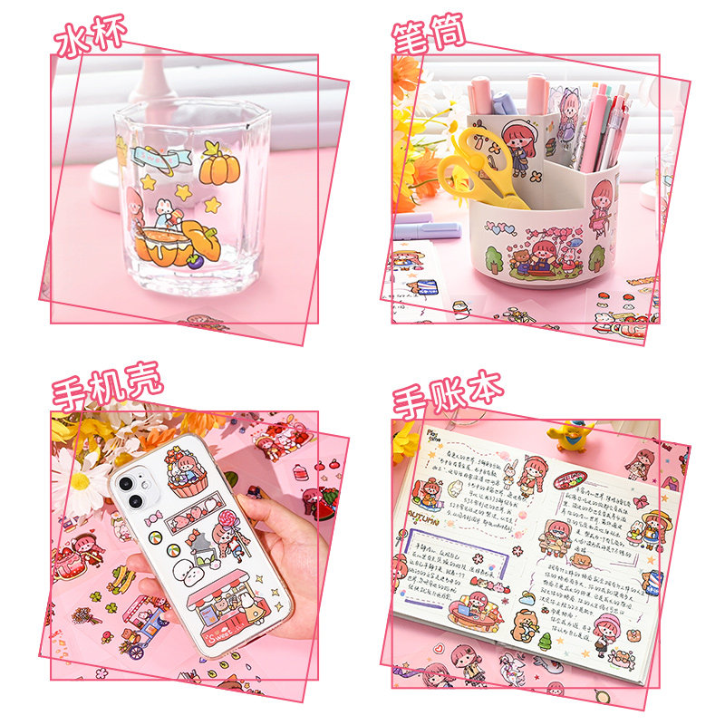 100 pieces of hand book stickers set PET waterproof seamless water cup stickers hand book stickers paste decorative small pattern cartoon cute children girl stickers mobile phone shell insulation cup stickers
