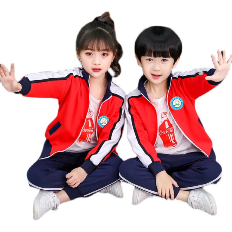 Kindergarten uniforms spring autumn winter clothing primary school students autumn sports class school uniform cotton suit red and yellow factory customization