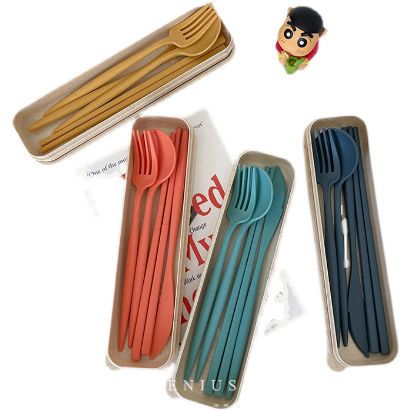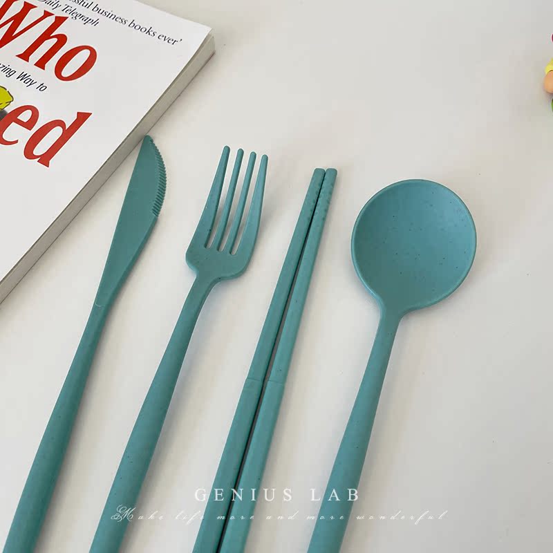 ins wheat straw out portable cutlery four-piece set fork chopsticks spoon suit student to work single use