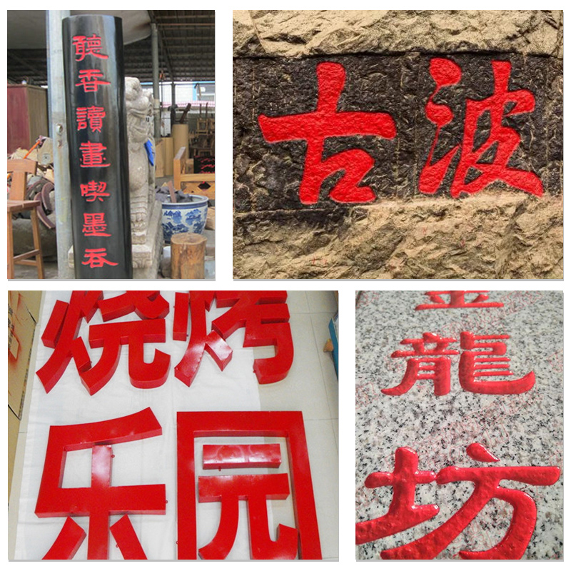 Oily Red Character Lacquered with Bright Tombstone Painted with Painted Stones lacquered Mausoleum Marble Paste Line Temples Craftsmanship Gifts Swing paint