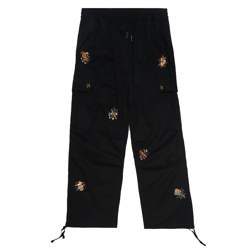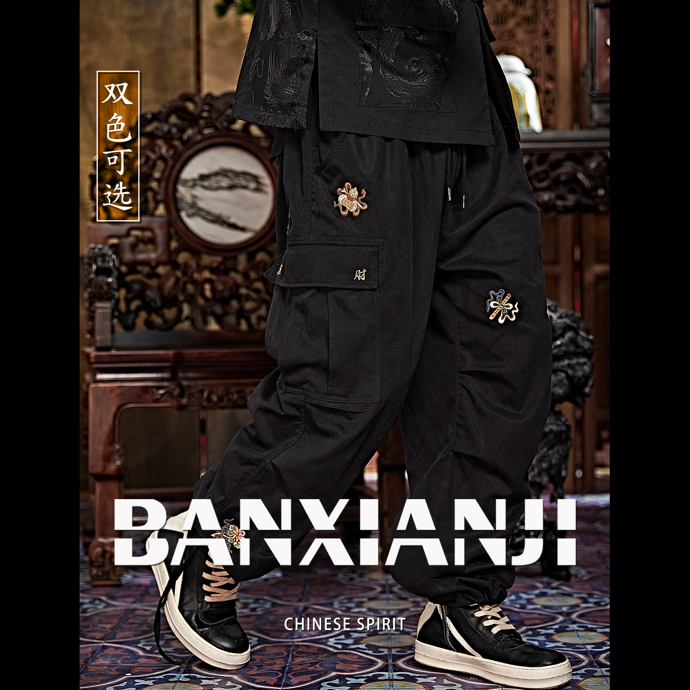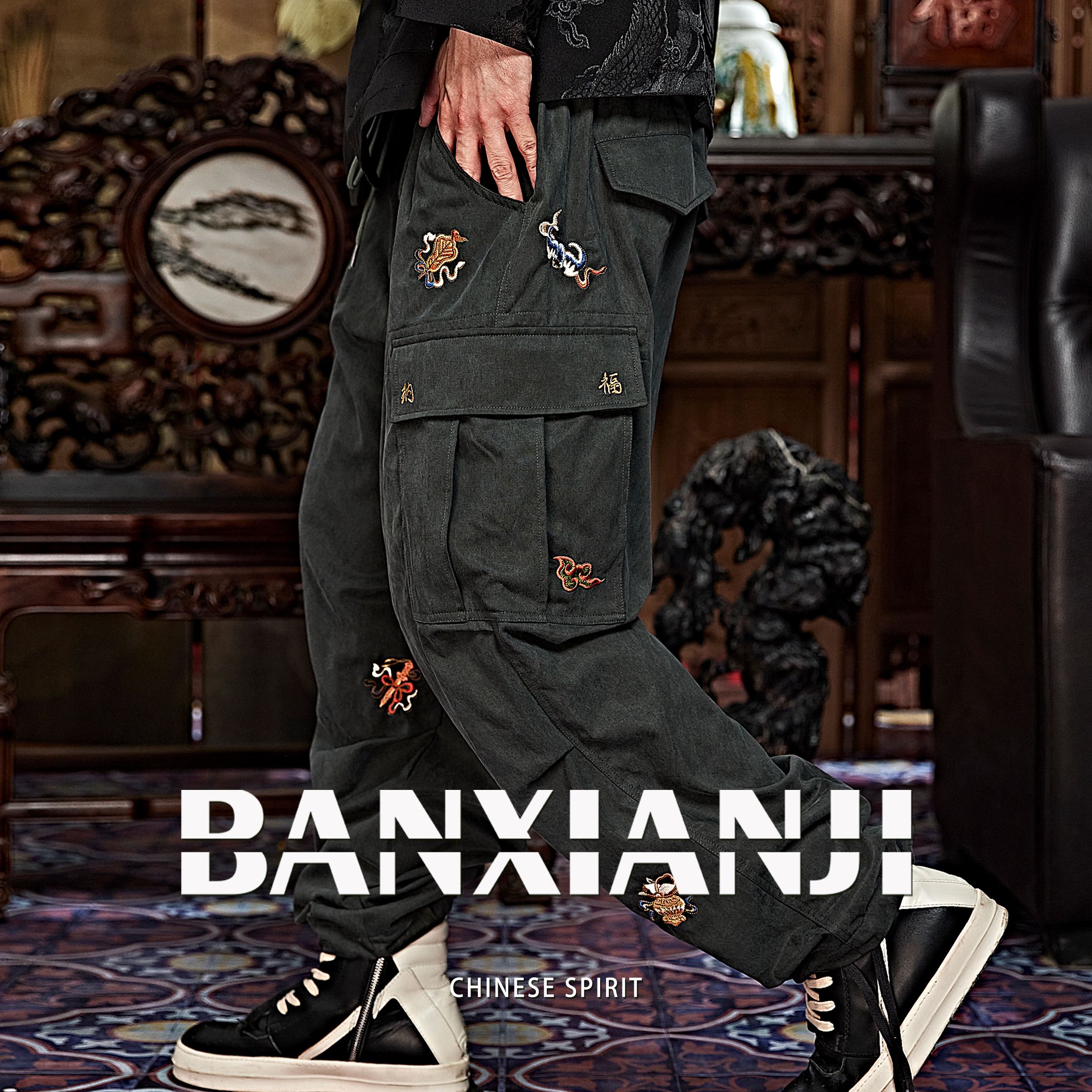 Semi-idle episode of "Eight Immortals" casual pants New Eight Immortals embroidery Heavy workmen Pants Loose Straight Cylinder Casual Long Pants Men