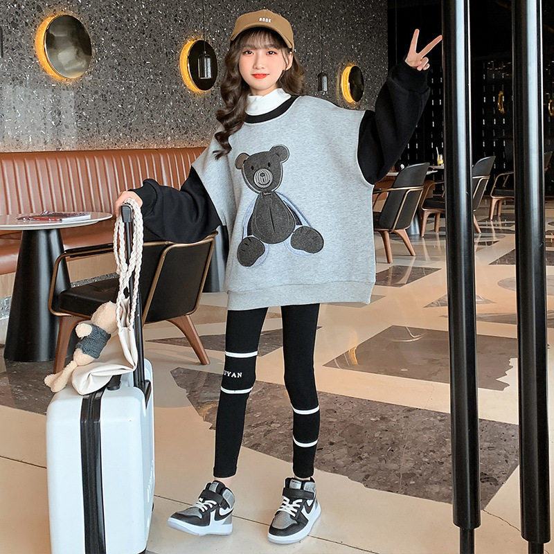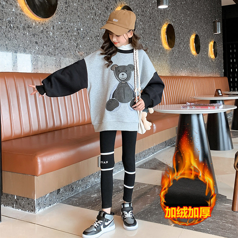 Girl Plus Velvet Clothing Tennis Red Girl Clothing 2022 New Tide Trendy Autumn Winter Han Edition Big Child Burst
