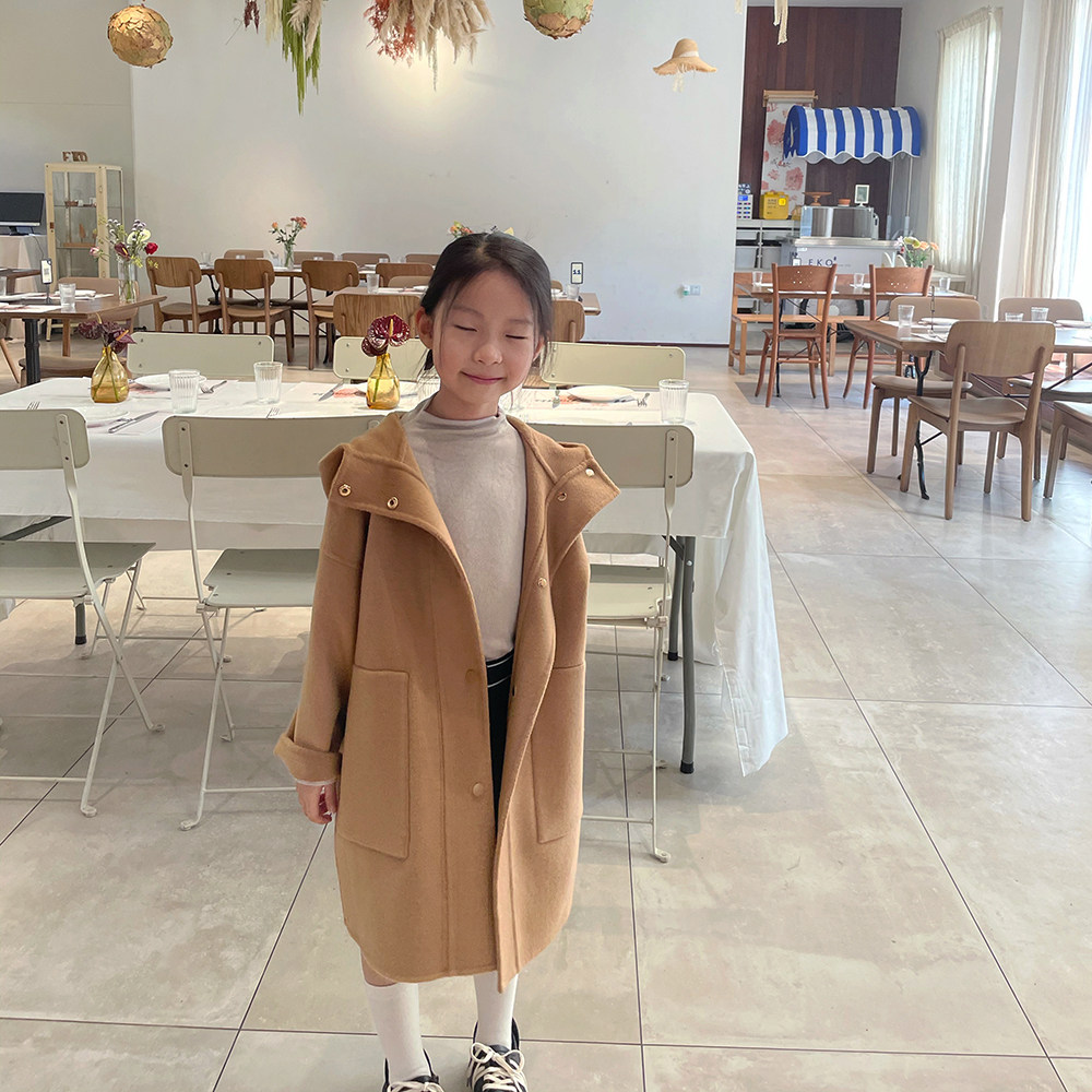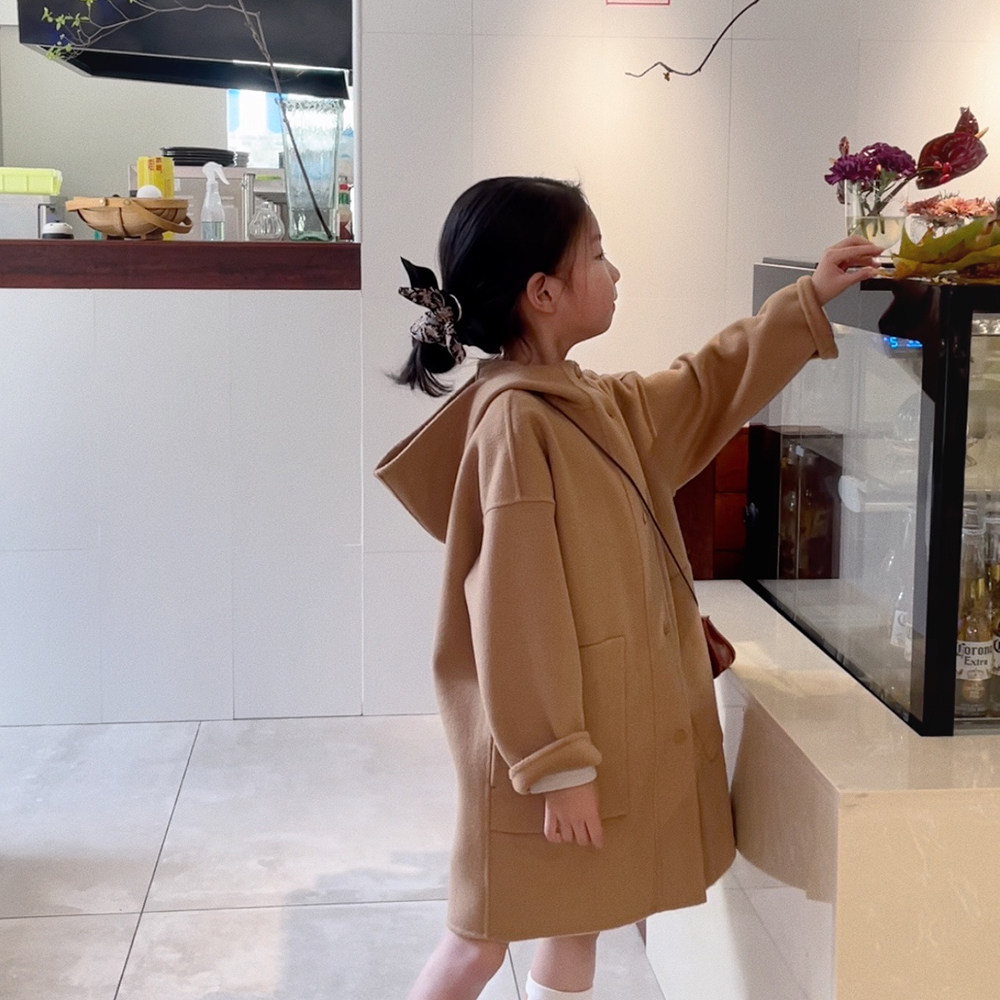2022 autumn and winter Korean style hooded cloak children's cashmere coat boys and girls all wool baby handmade woolen coat