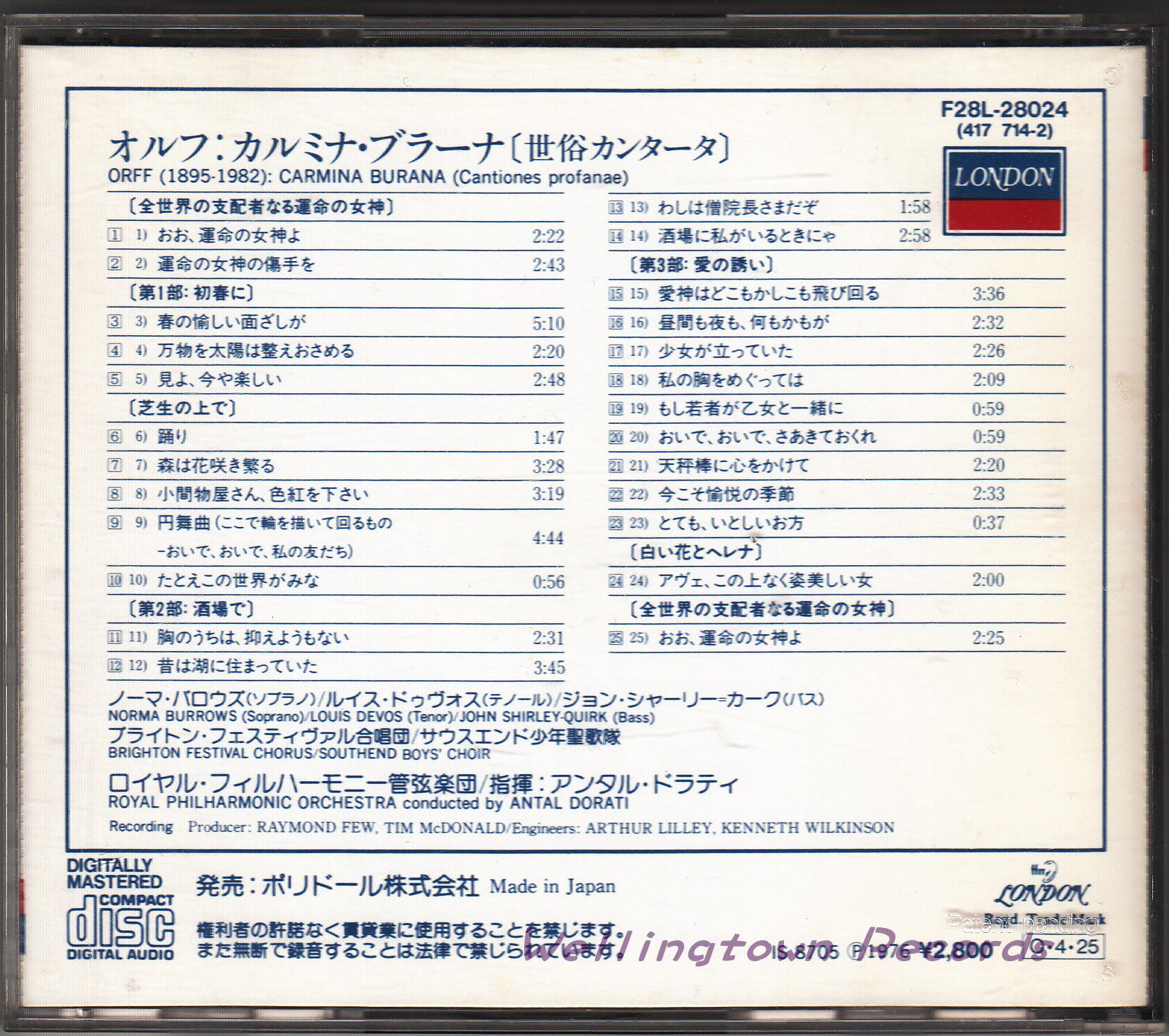 Burrows DeVos Dorati Royal Philharmonic Orff Bran Poems