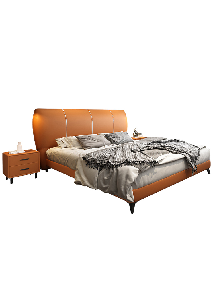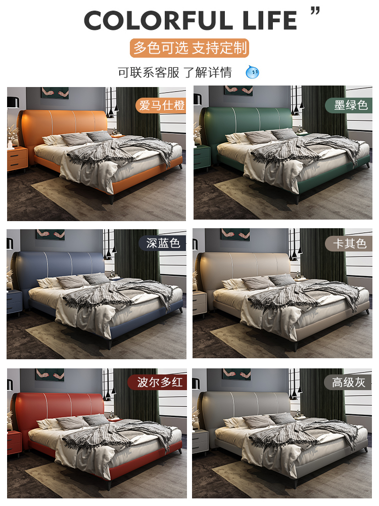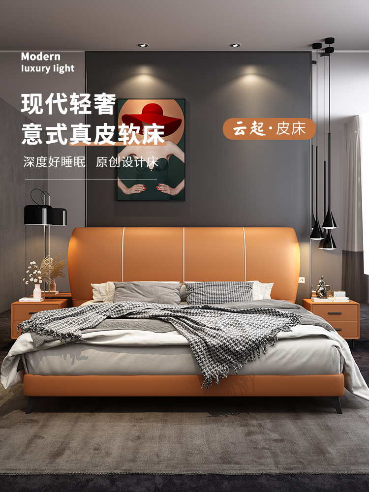 Bed light luxury modern double master bedroom wedding bed soft bag big bed Italian minimalist leather bed Nordic simple new leather bed