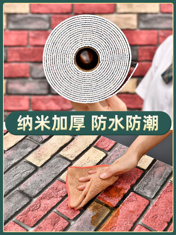 Wallpaper self-adhesive commercial 3d stereoscopic brick wall sticker waterproof moisture-proof clothing store dining room background wall skirt decoration wallpaper
