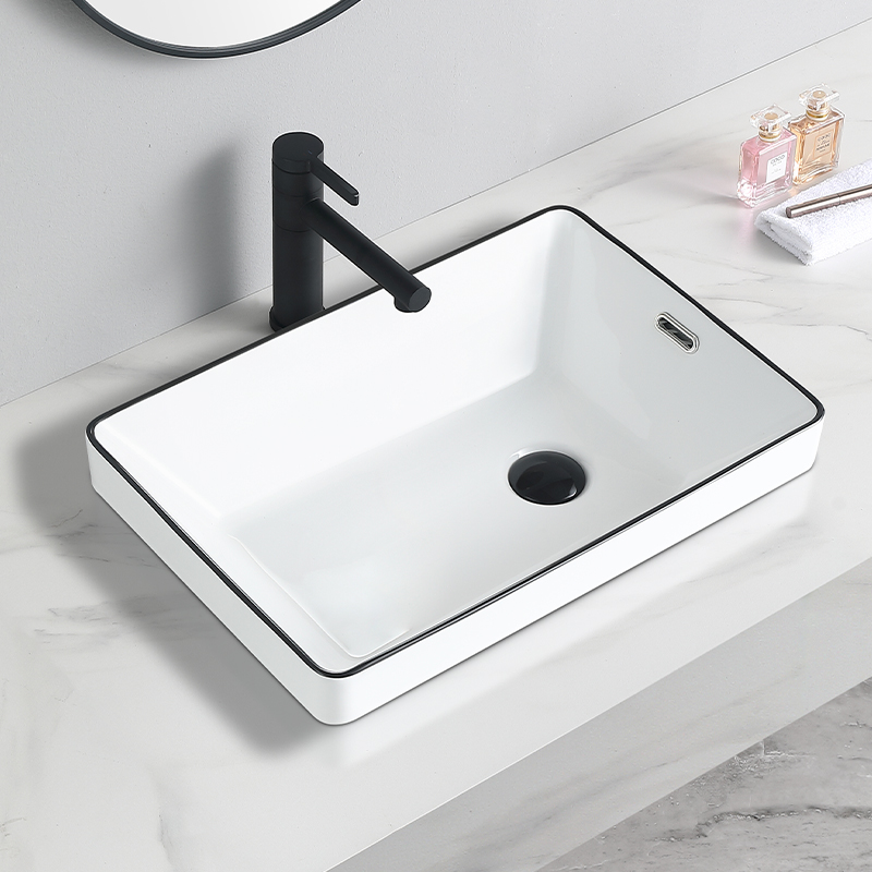 Taiwan basin side rock level half embedded wash basin ceramic household balcony washing pot left and right side water