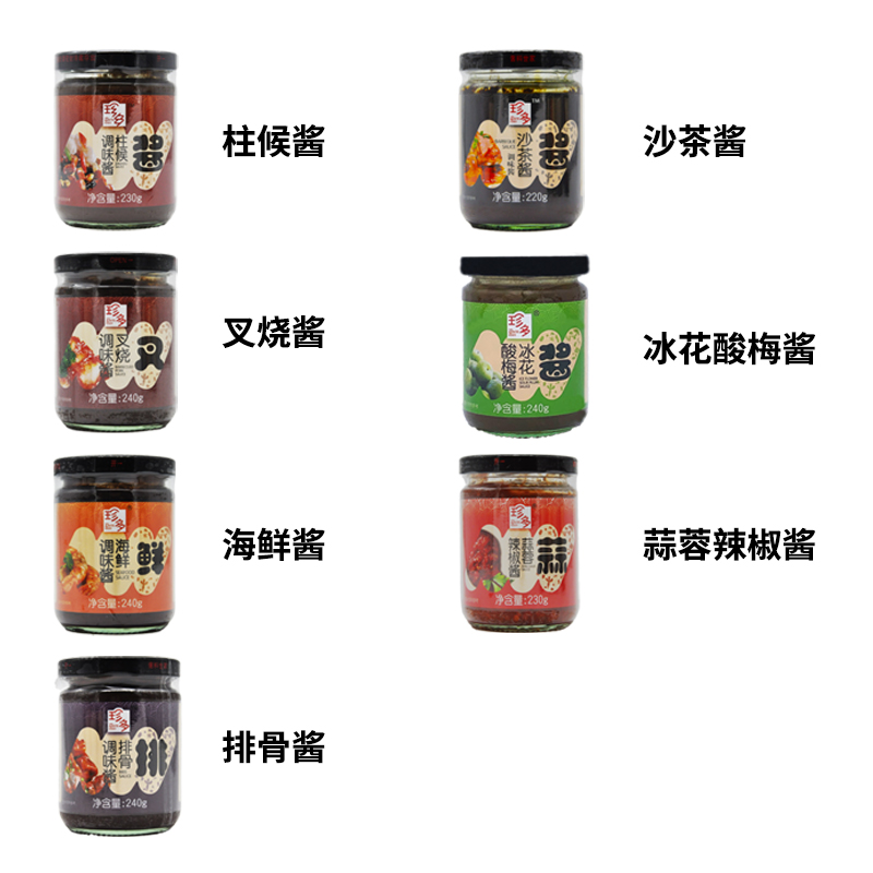 Zhuhou Sauce, BBQ Pork Sauce, Hoisin Sauce, Pork Rib Sauce, Shacha Sauce, Garlic Chili Sauce, Binghua Sour Plum Sauce, 3 Bottles, 7 Bottles Combination, 12 Bottles Combination