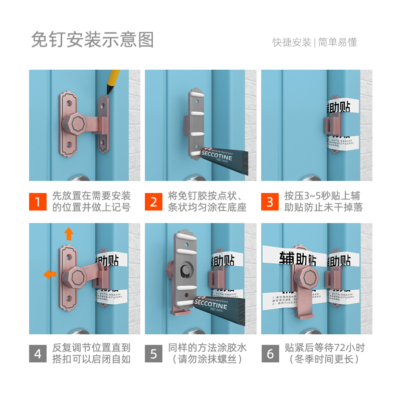 Free Punch Bolt Indoor Door Buttoned Door Bolt Make-up Room Door Lock Hitch Stationary Toilet Push-and-pull Room Door Latch