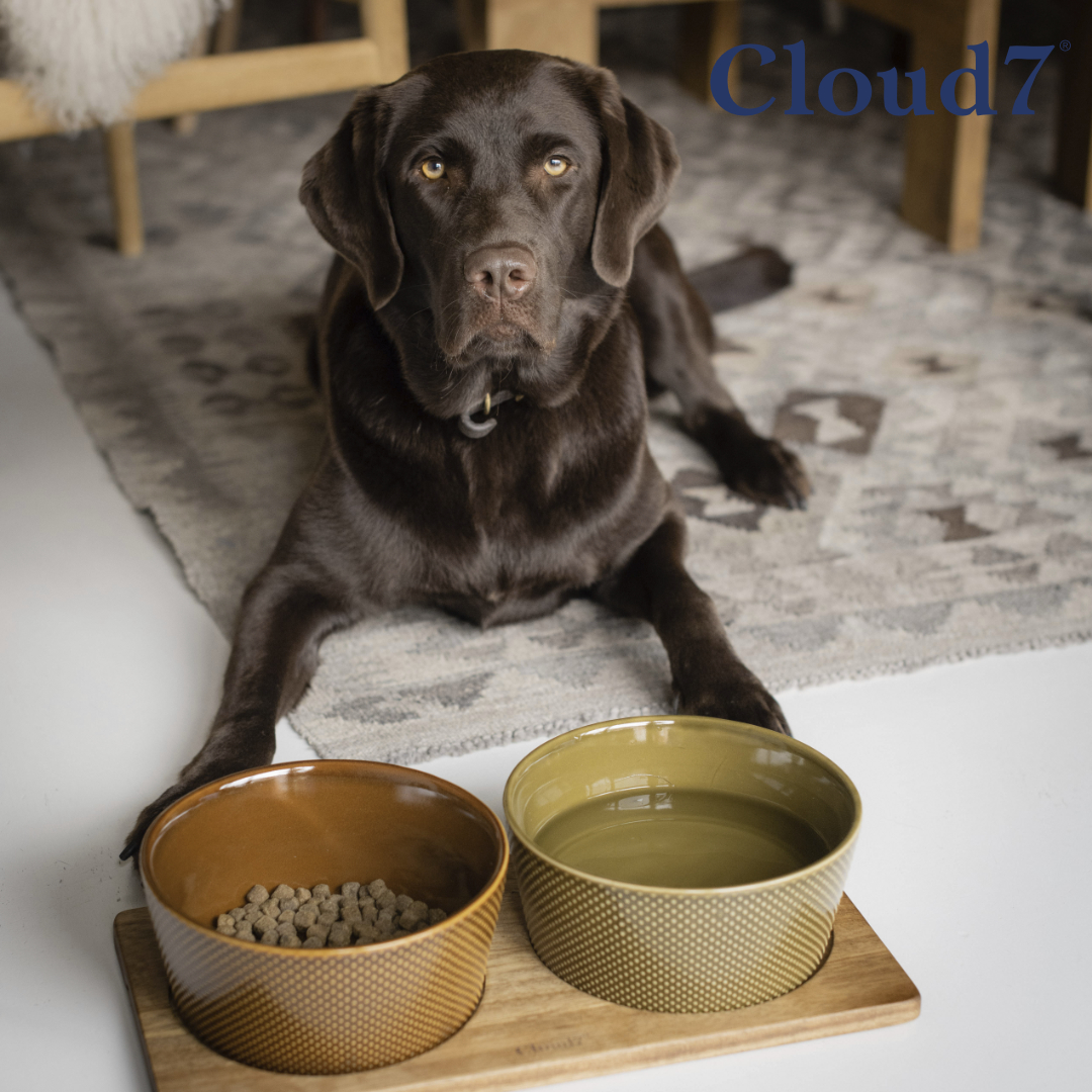 Cloud7 ceramic pet bowl imported anti-overturning neck guard solid wood dog bowl dog bowl cat bowl cat food bowl petisan
