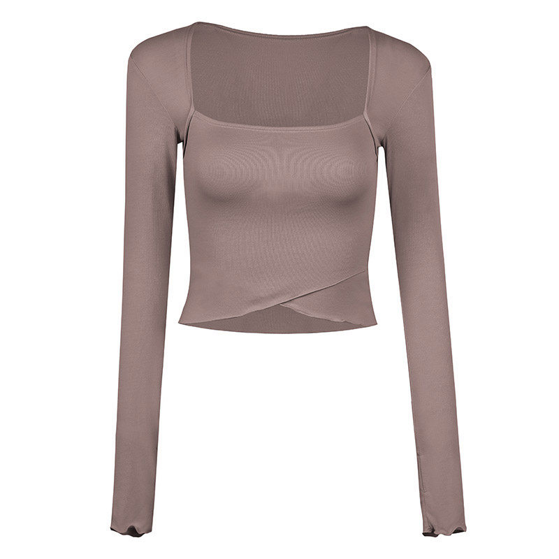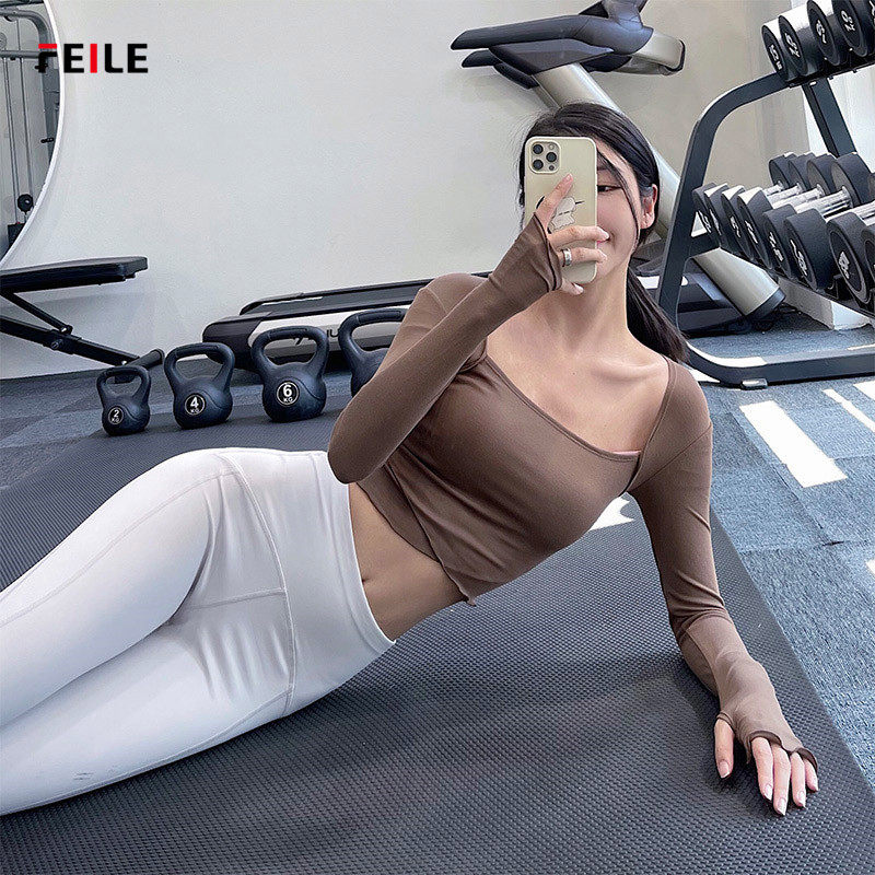 FEILE TIGHT FIT Fitness Suit Women Fall New Square Collar Long Sleeve Speed Dry Hot Sell Running Sport Blouse Tide