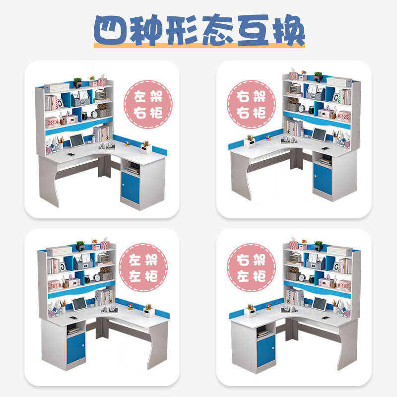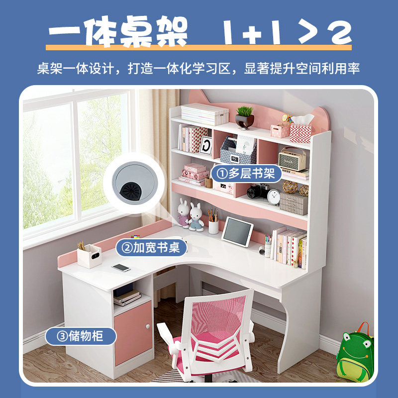 Bedroom student study table girl pink children's room desk bookcase combination one corner with bookshelf desk