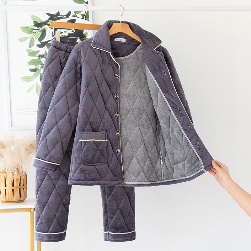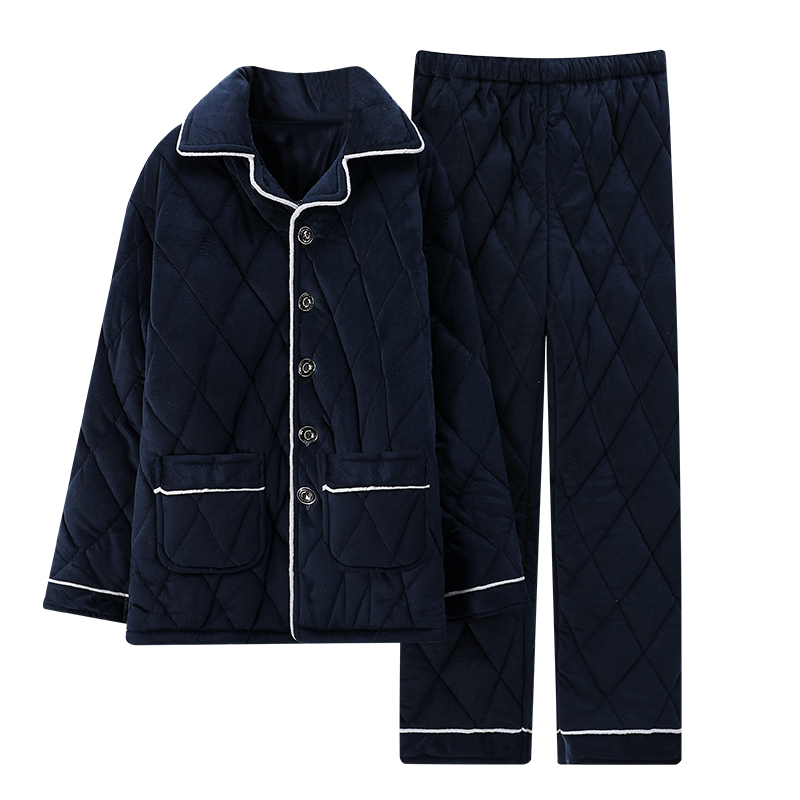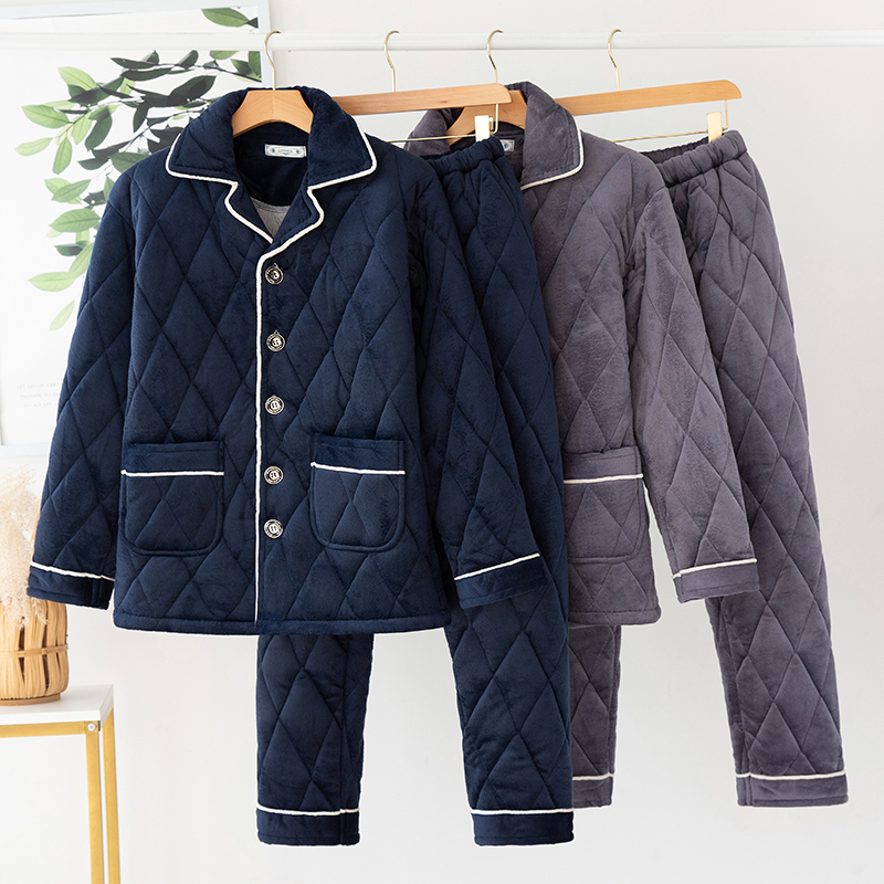 Winter men plus velvet padded three-layer jacket winter coral velvet large size pajamas flannel warm home wear