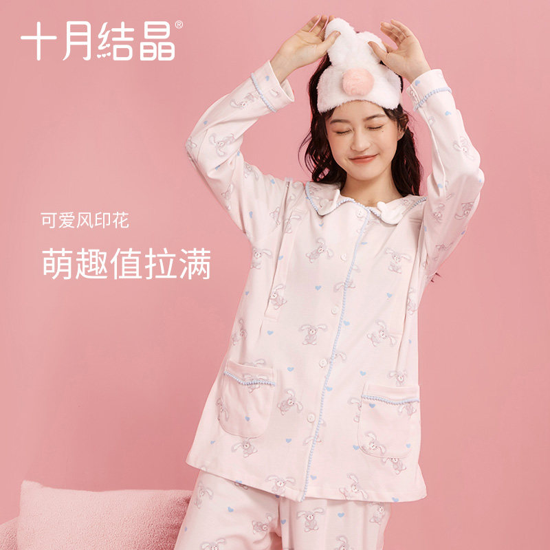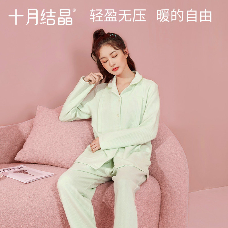 October crystalline confinement clothes spring and summer postpartum air cotton pregnant women pajamas set breastfeeding nursing home clothes thickening