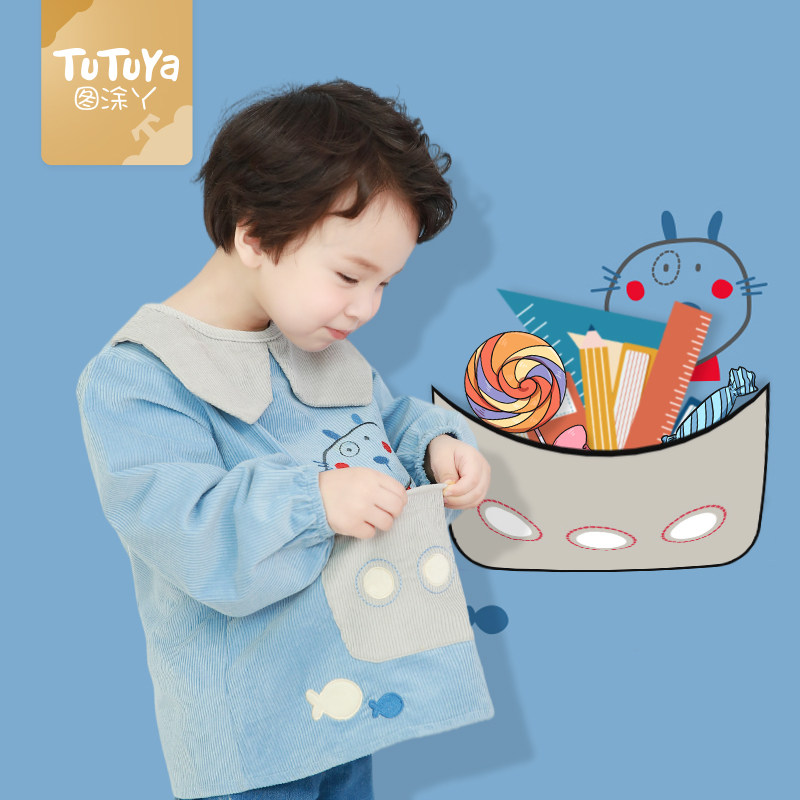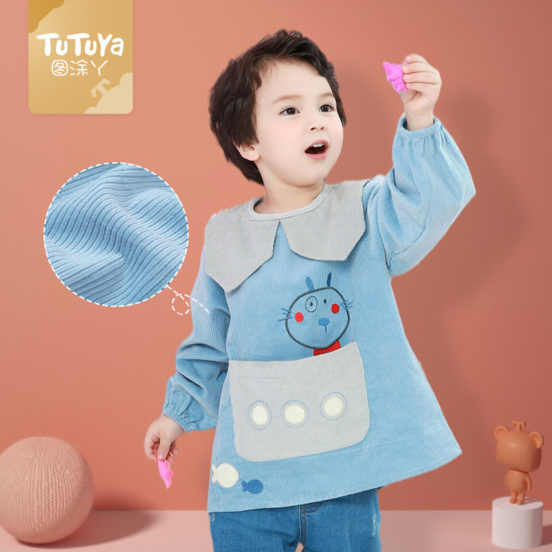 Baby gown boys and girls autumn and winter new bib eating anti-dressing waterproof anti-dirty children's apron outer wear
