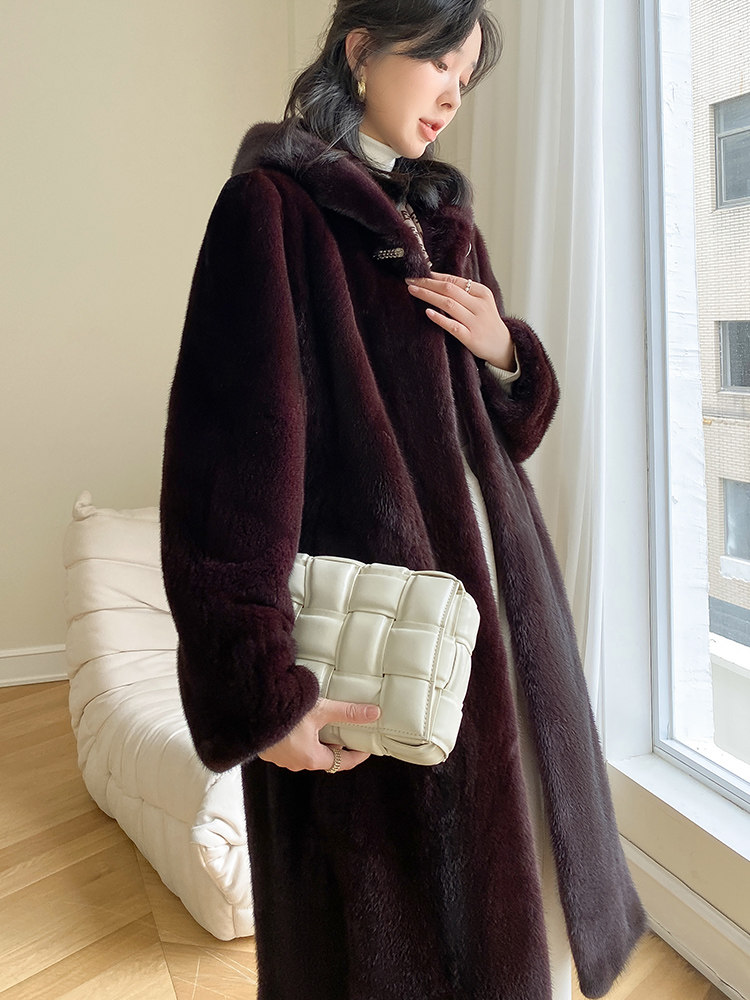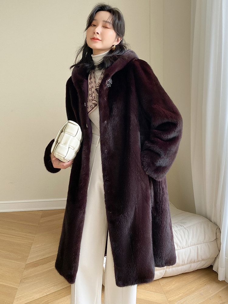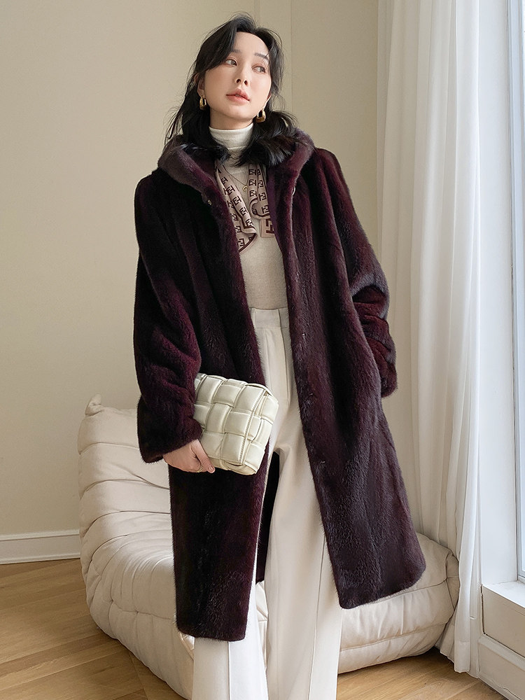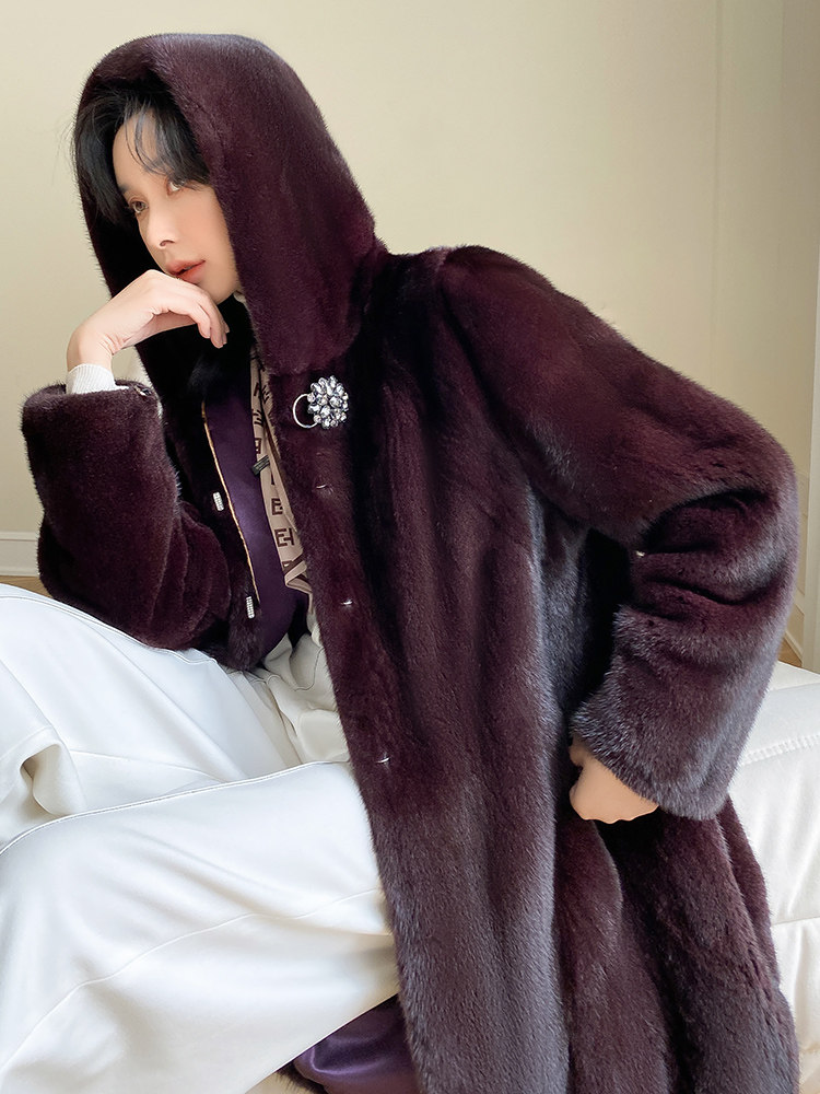 Mink fur coat women 2022 newly imported velvet whole mink mid-length hooded elderly mink fur mother coat