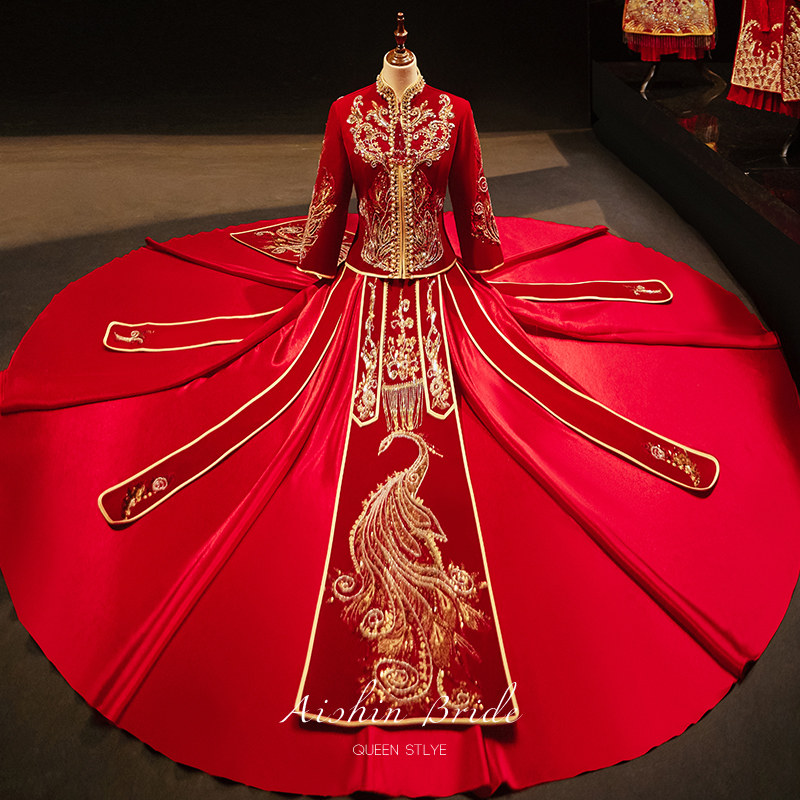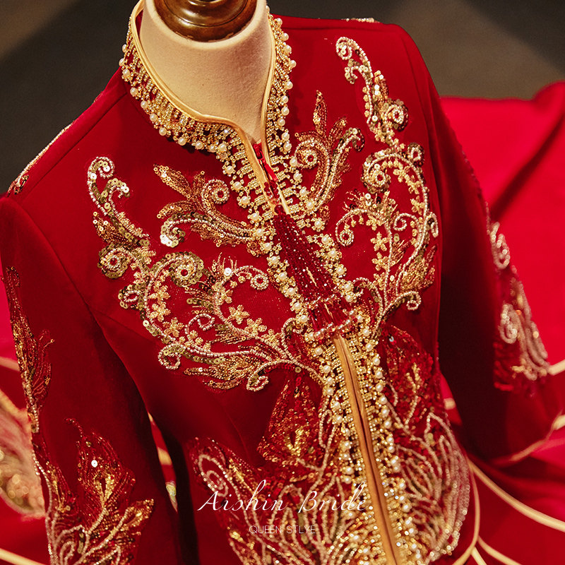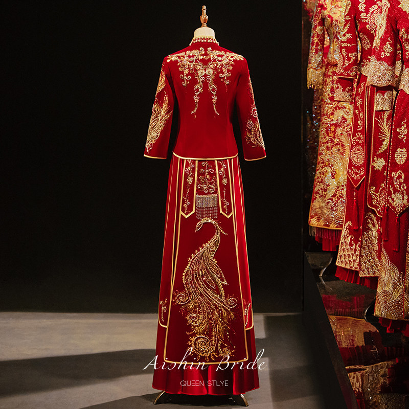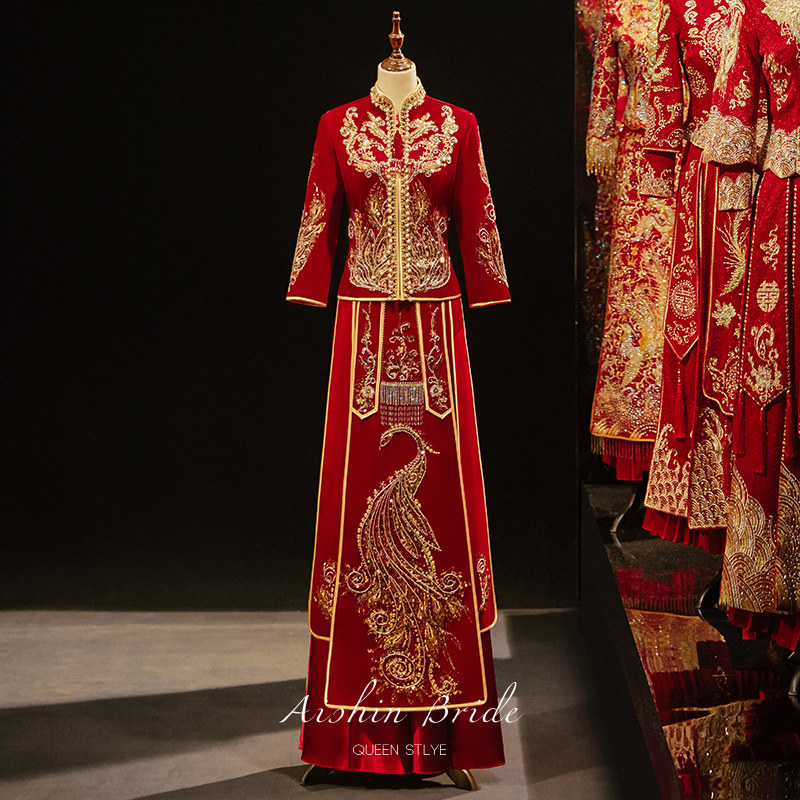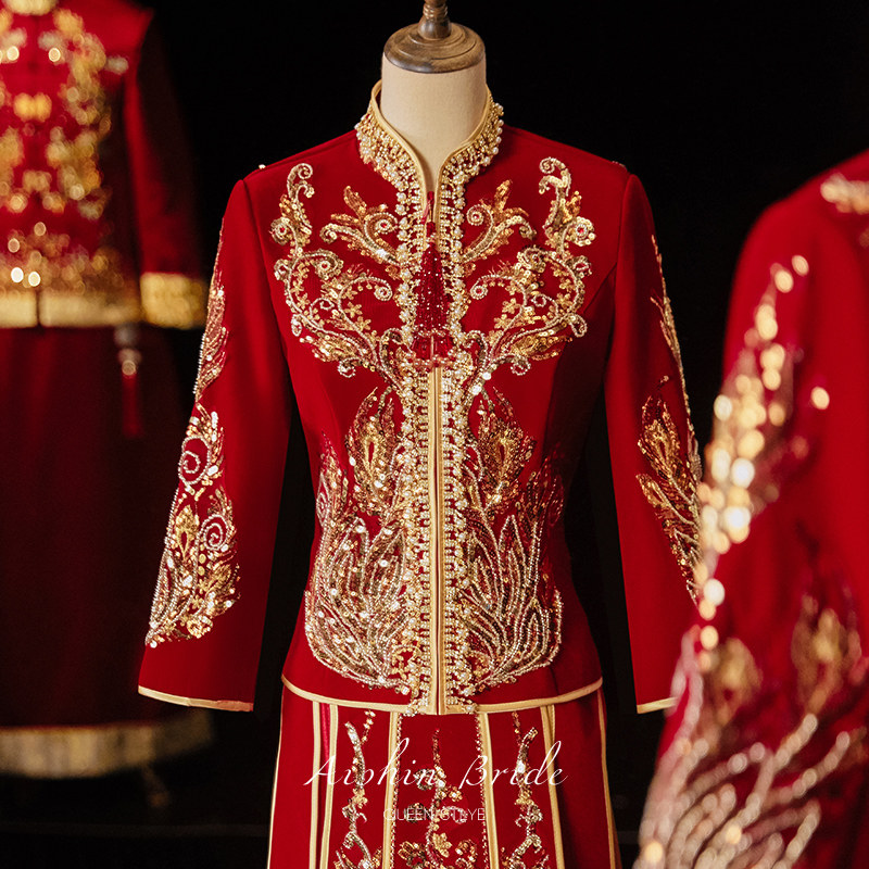 "Yu Tang Sheng" velvet Xiuhe clothing 2022 new bride Chinese dragon and phoenix hanging wedding toast clothing female retro winter