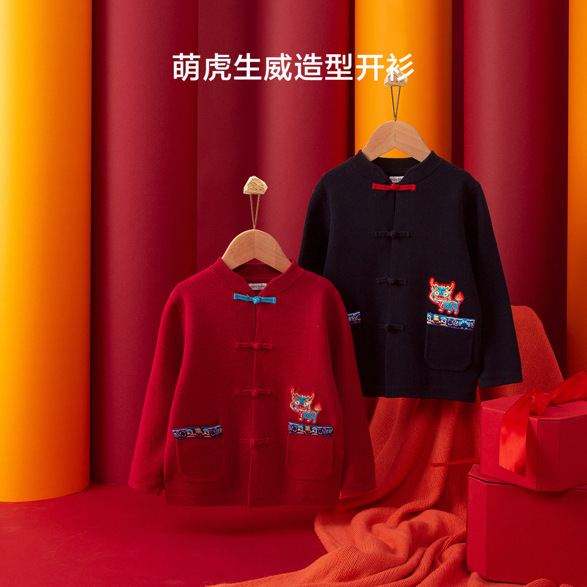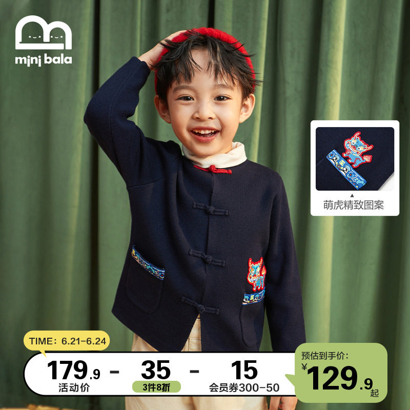 Mini-Balabala 2022 New Year's season boy's baby country Chauded style disc button cardiovert cardiovert cardiovert