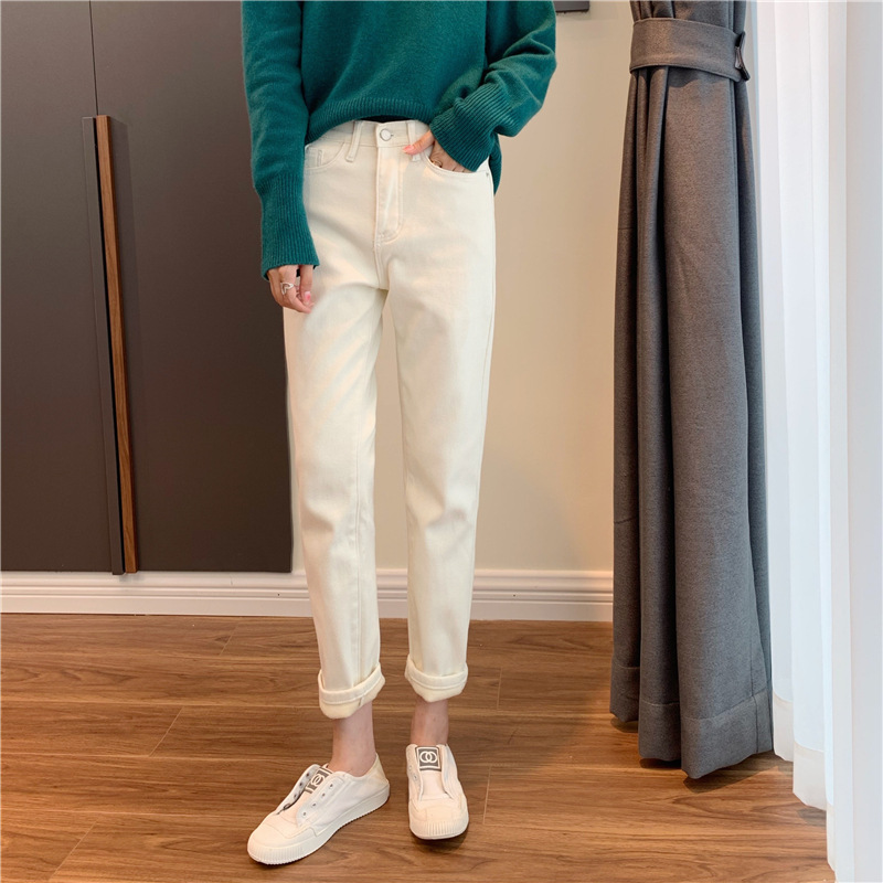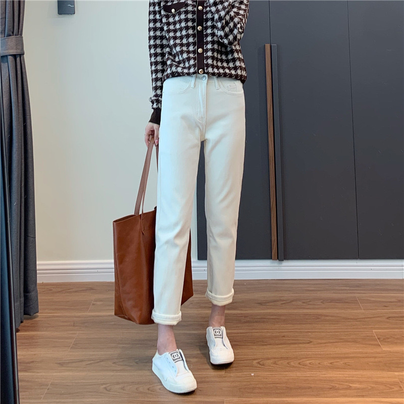 High-value JU is thin and high-elastic black technology tapered small halen plus velvet thickened close-fitting comfortable small straight pants