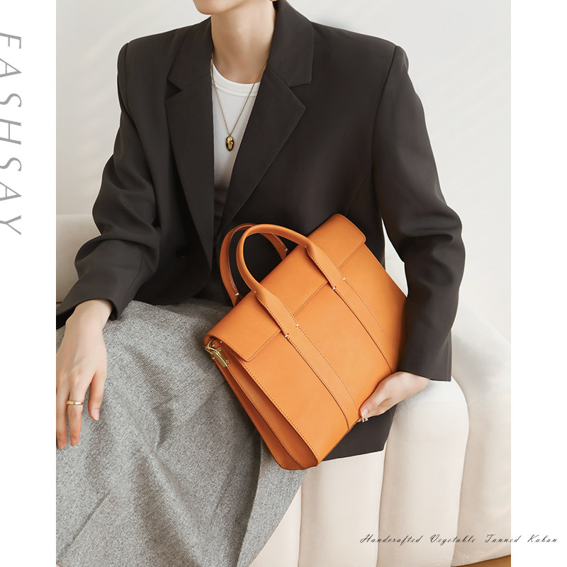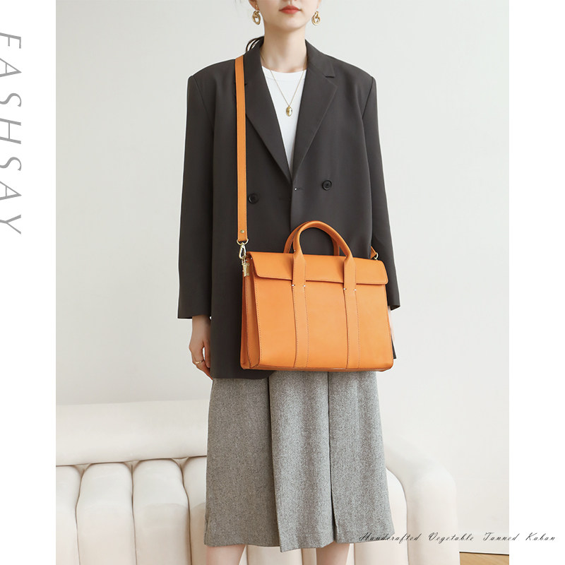 FASHSAY full leather handmade high-end atmosphere ladies leather senior business commuter computer briefcase handbag