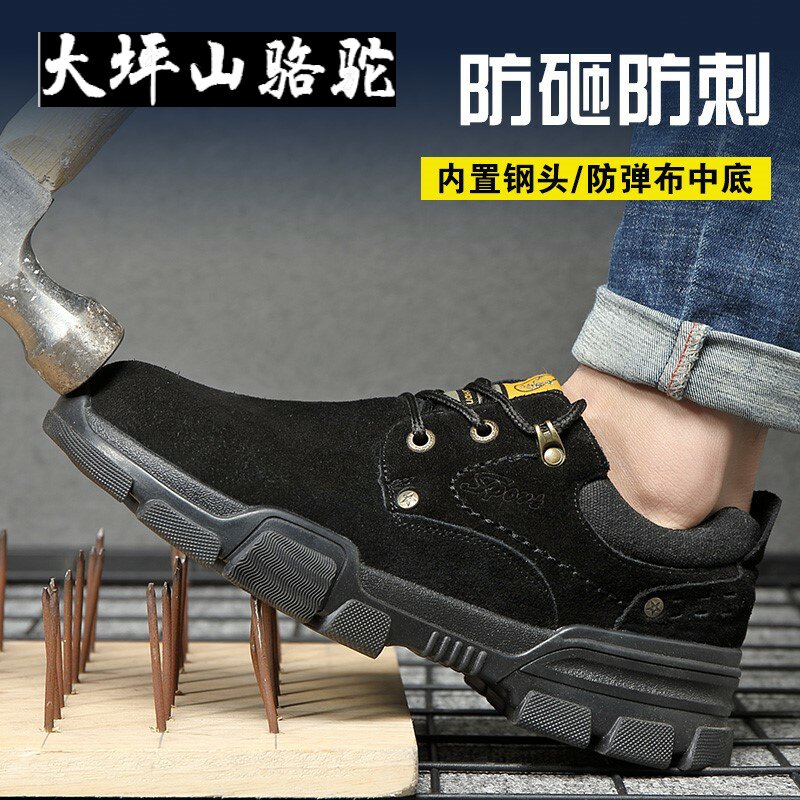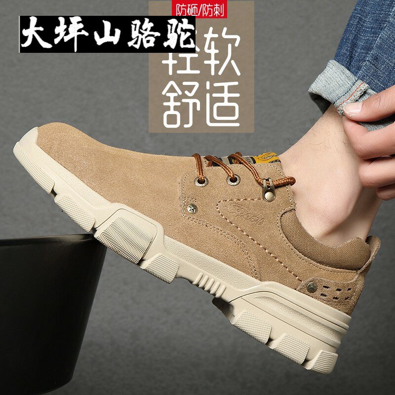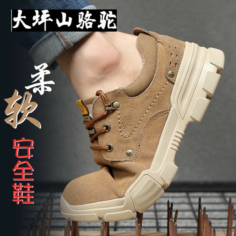 Large Terrace Mountain Camel Labor shoes Men's anti-smash piercing super light odor resistant steel Baotou Softbottom electrowelding work