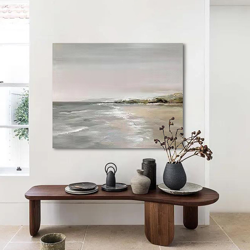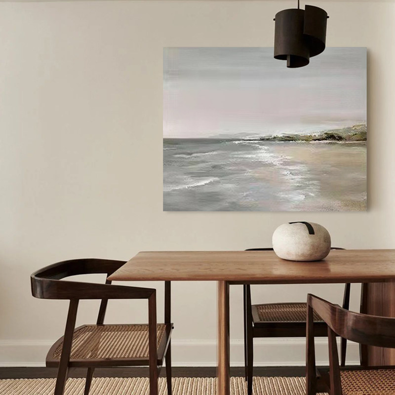 YZS Original "Wave Light of the Pooh" Handpainted Abstract Oil Painting Silent Wind Sea View Hung Painting Dining Hall Painting Healing Department Painting