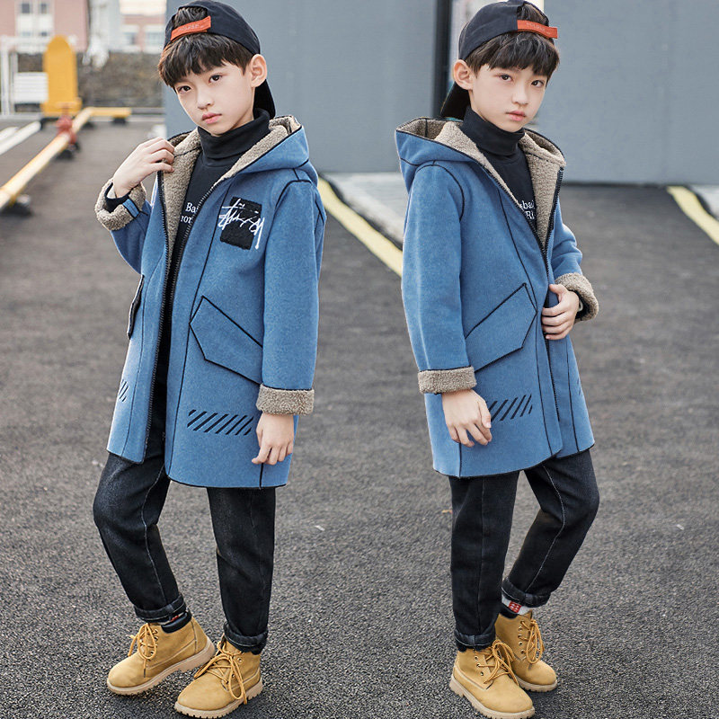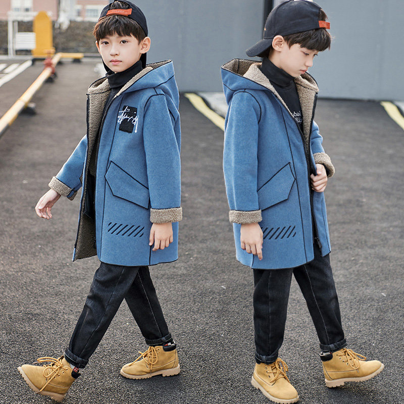 Boy's autumn and winter style Garnard thickened Son Coat 2021 New Winter Dress Boy Big Boy Magpie Fur Coats