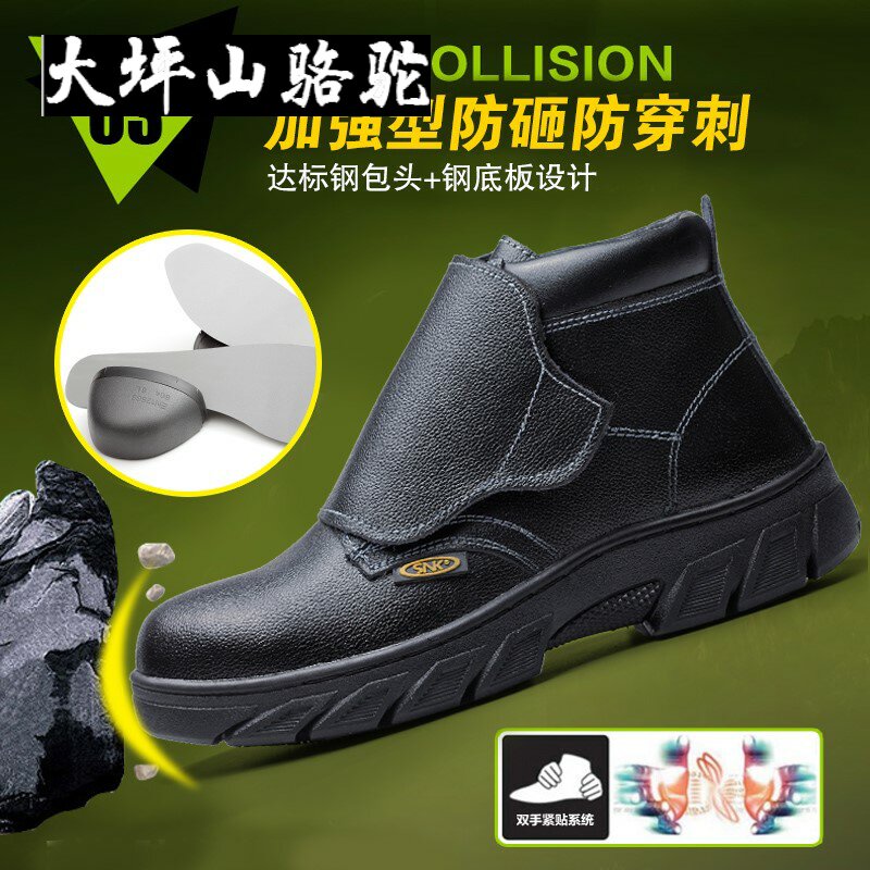 Large Terrace Mountain Camel Labor Shoes Men's Steel Ladle Head High Cylinder Electrowelding Engineering Anti-Puncture Site Breathable Safety Work