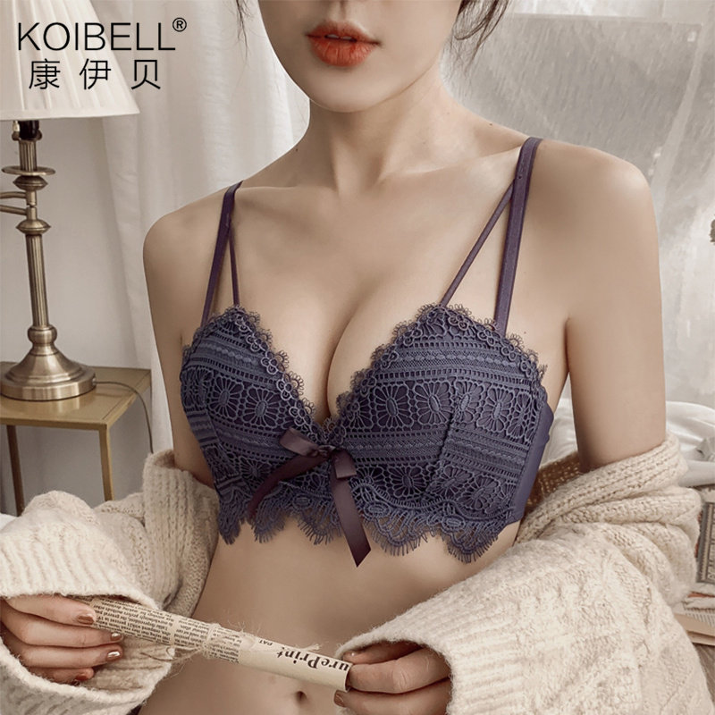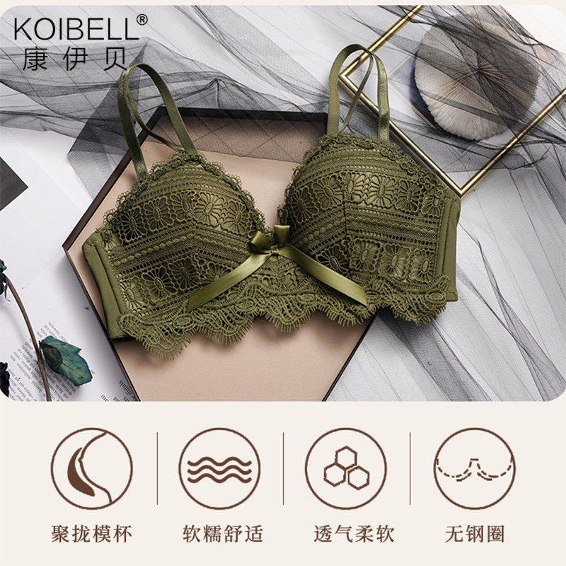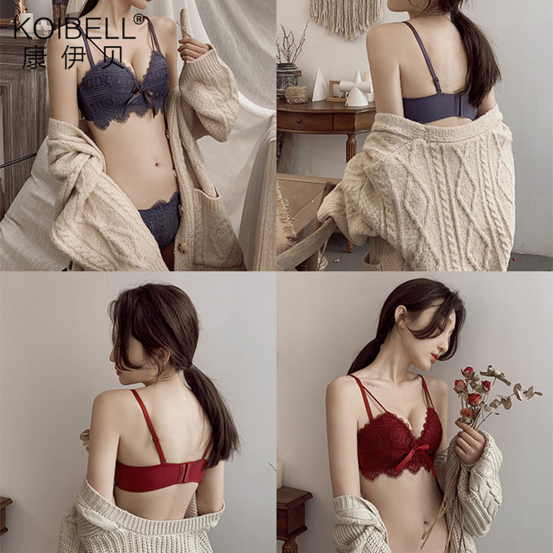KOIBELL underwear female small chest gathered without steel ring adjustable sexy red natal year lace bra set
