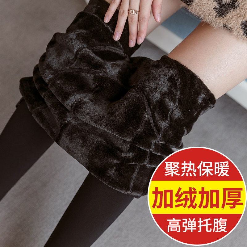 Pregnant women's leggings pantyhose autumn and winter plus velvet thick bare legs adjustable one-piece pants rompers stockings spring and autumn